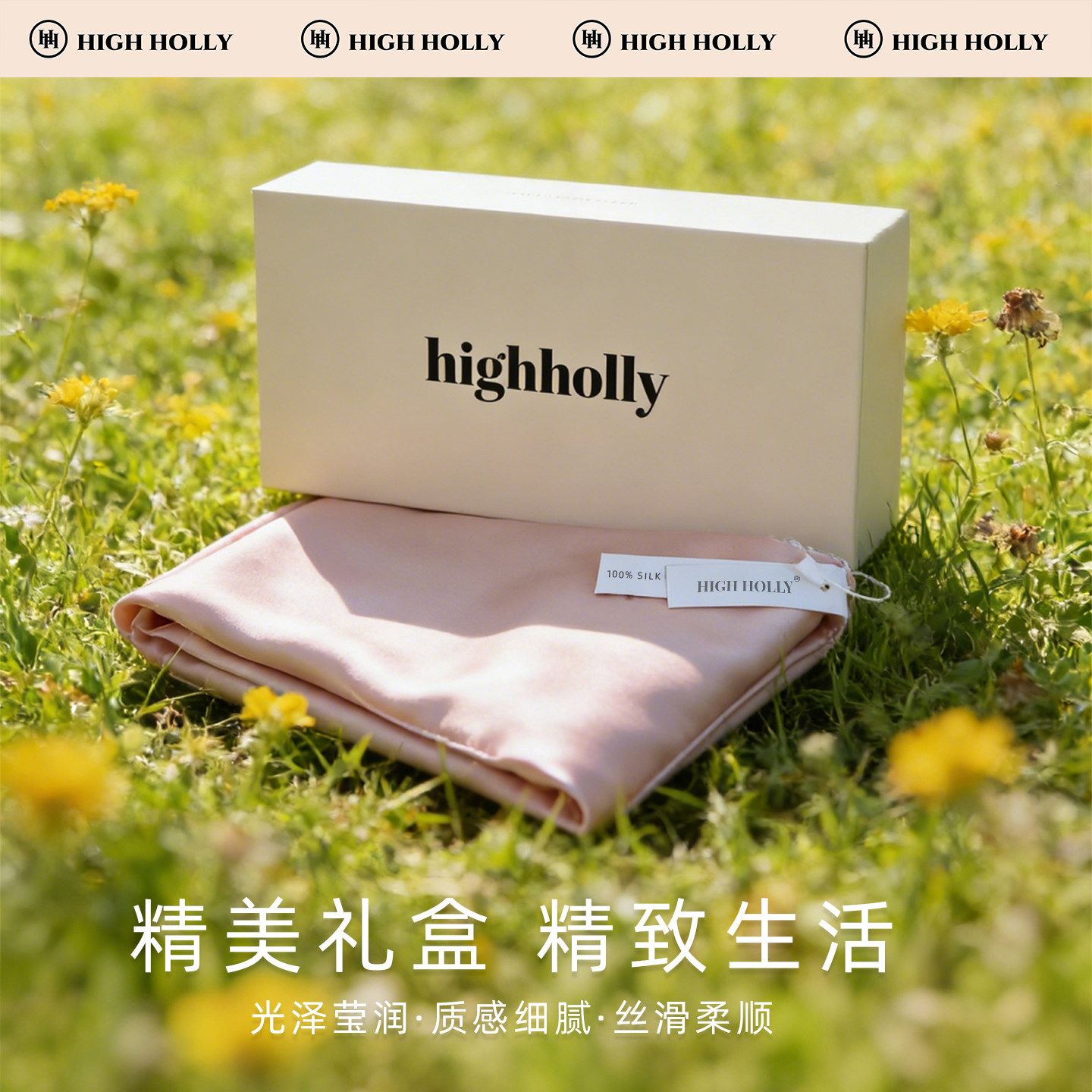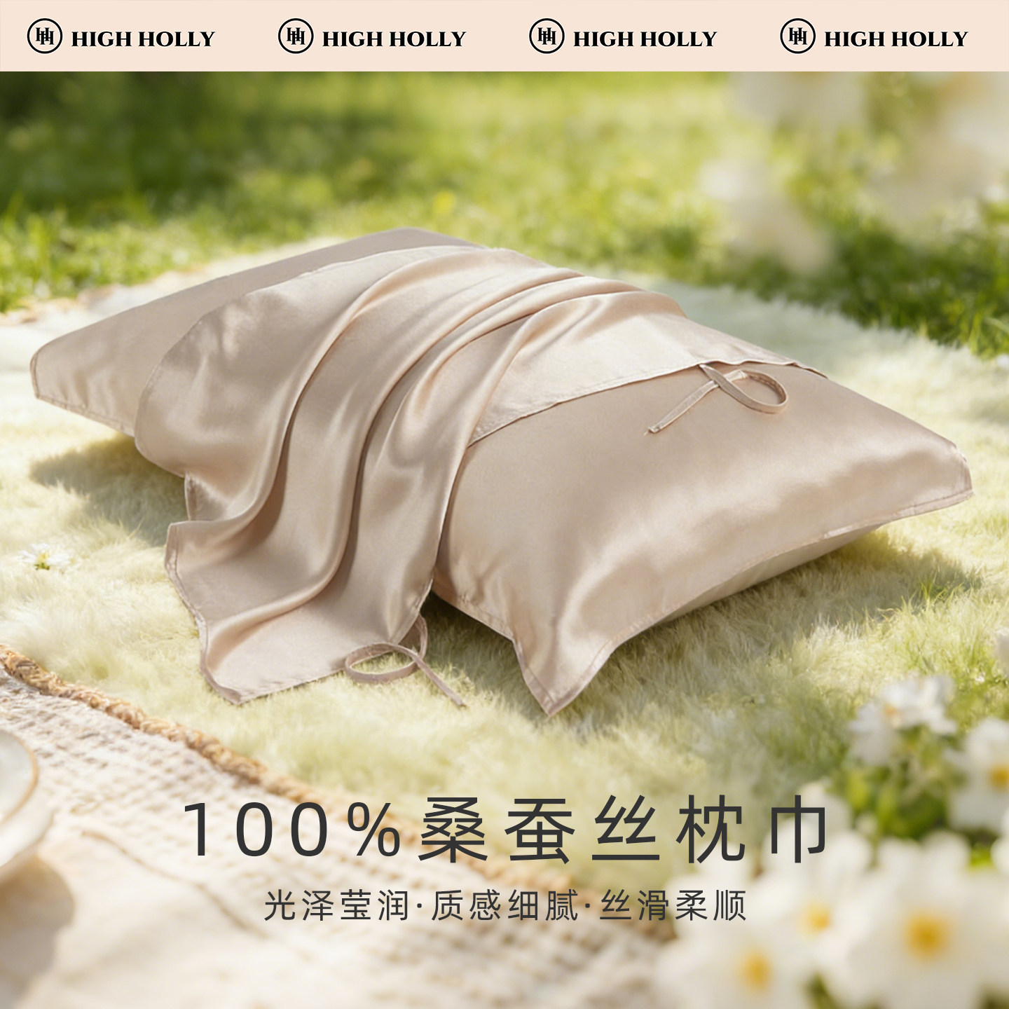 22姆米真丝枕巾100桑蚕丝枕套丝绸绑带可固定防头油礼盒一等品对