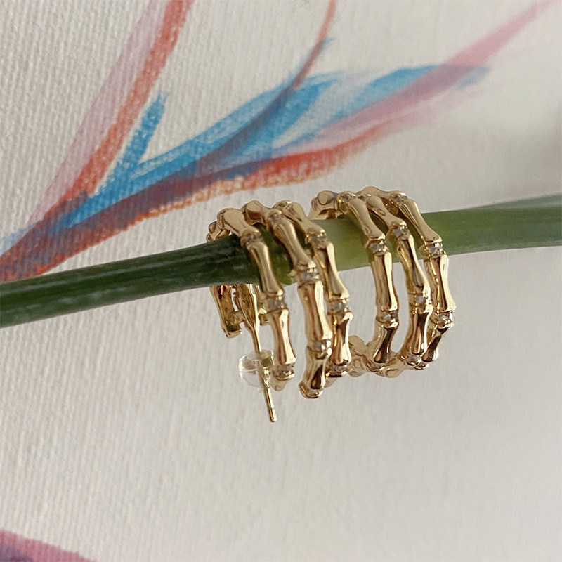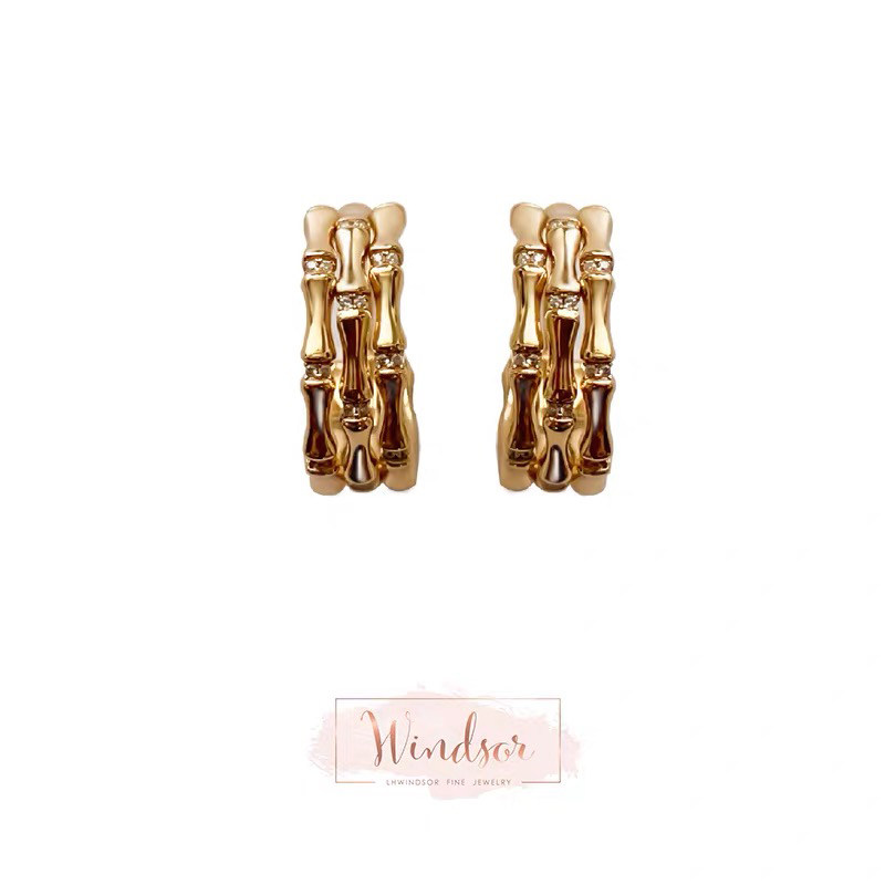 LHWindsor温莎珠宝韧竹节耳环小众设计复古高级个性圆圈耳饰ins