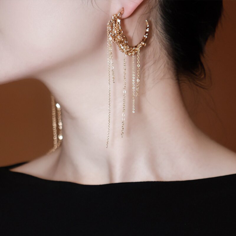 XHENXHEN郝蕾岳岳太一同款春分系列月牙流苏耳钉小众设计气质高级
