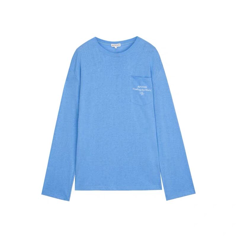 AVVENN前胸口袋印花宽松休闲长袖T恤 1519/1520