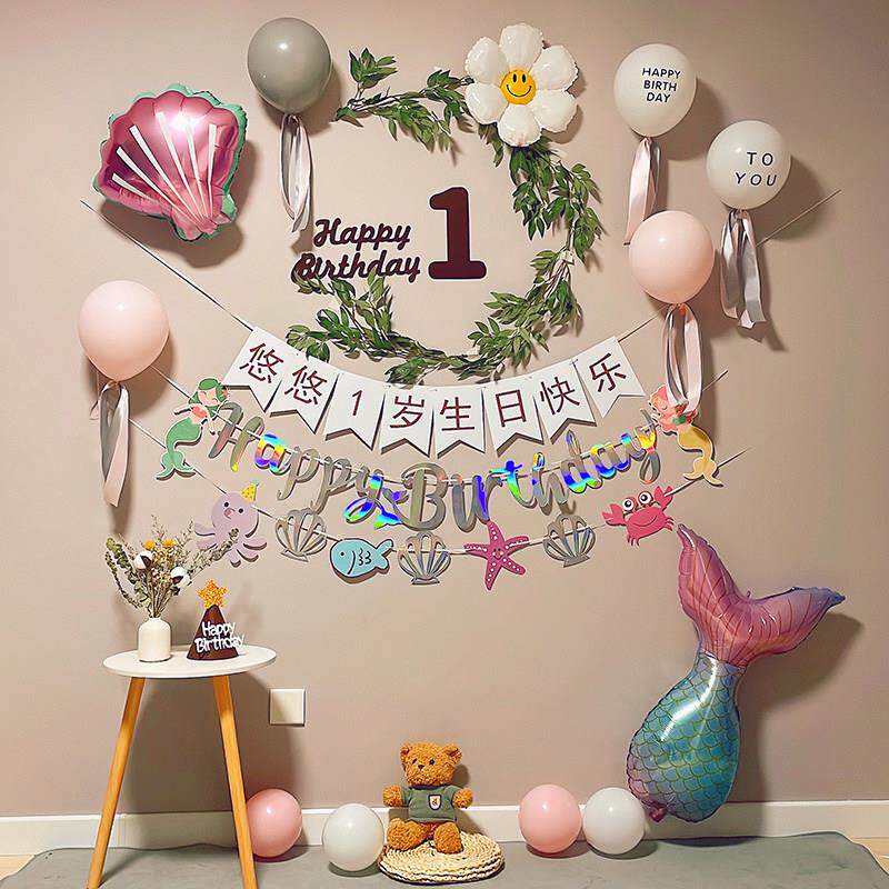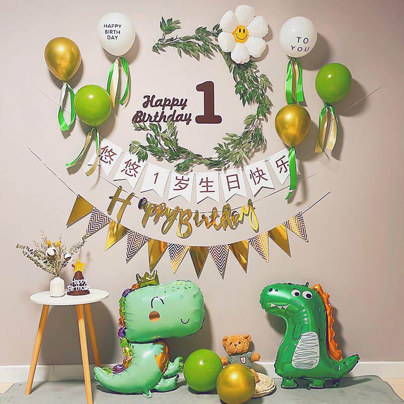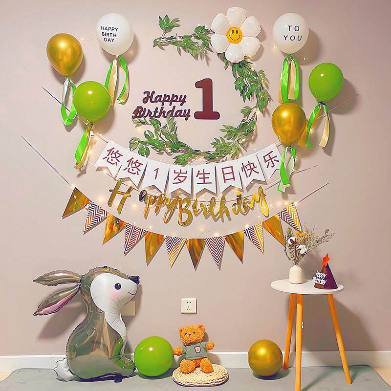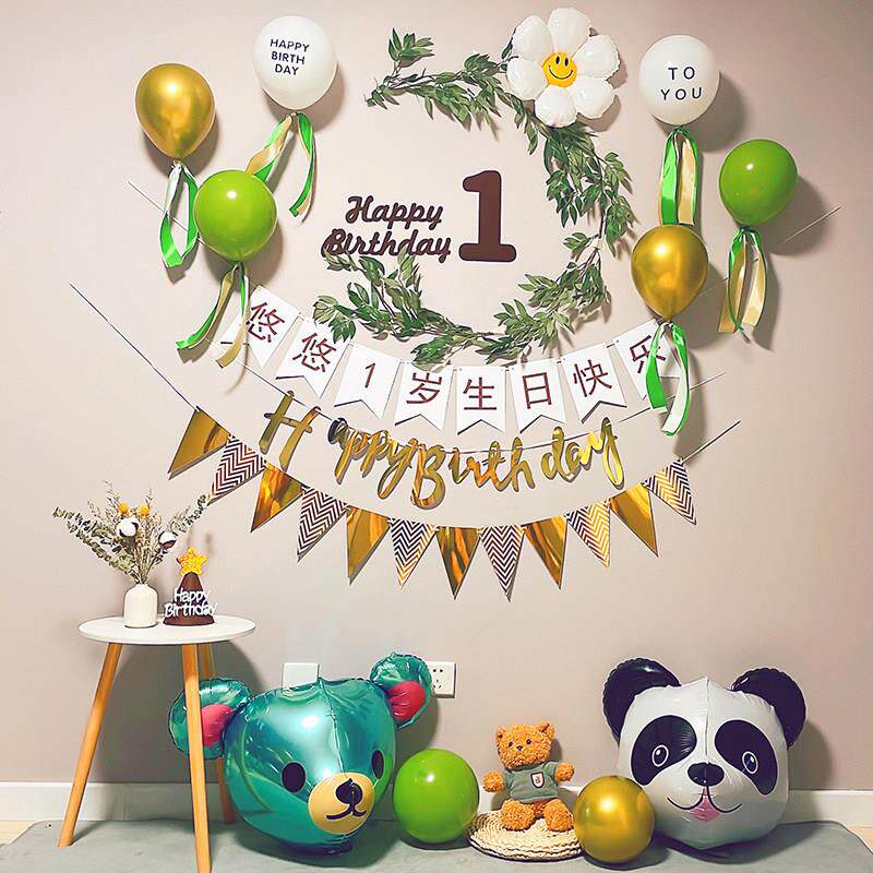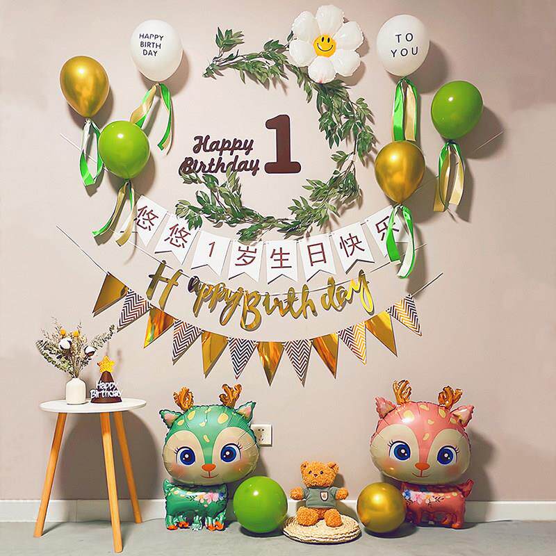 ins风森系主题生日布置气球装饰男女宝宝1周岁百天儿童派对背景墙