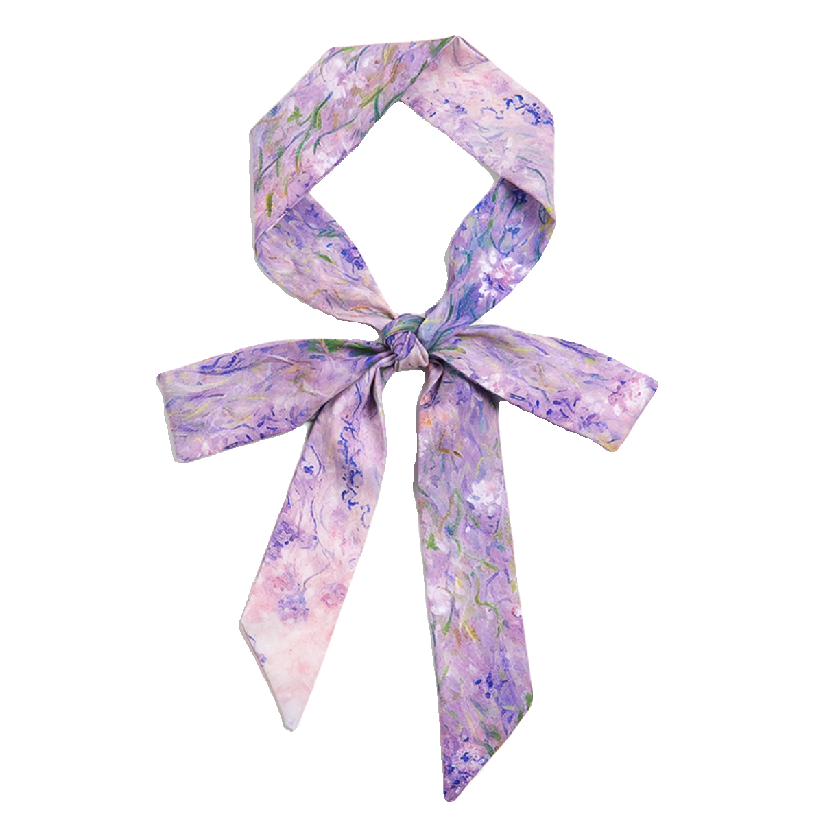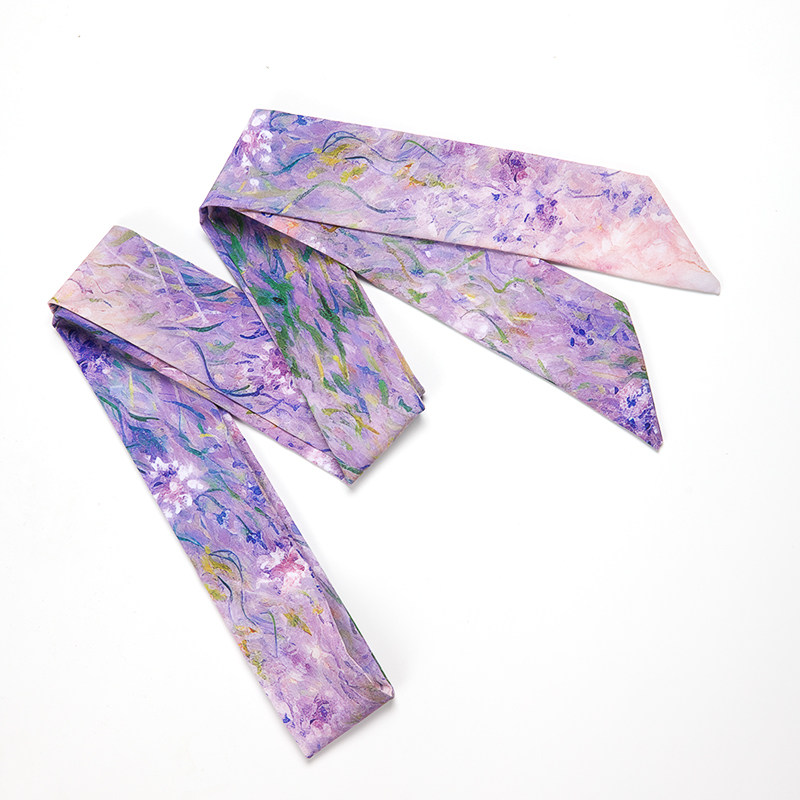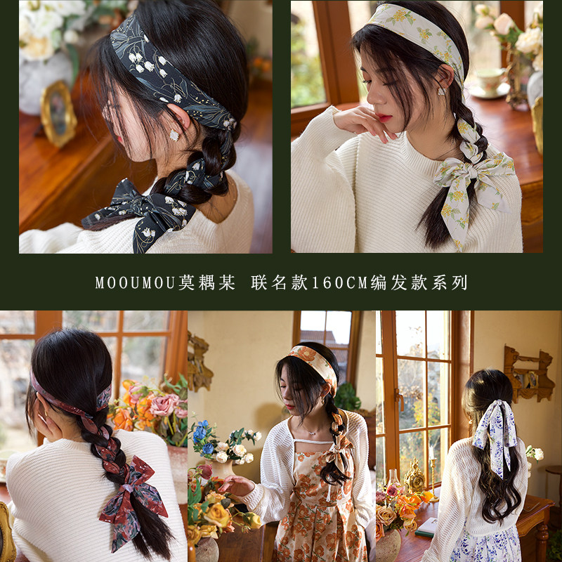 《紫黛渐染》加长编发带辫子窄长条丝巾发箍紫色碎花绑发饰品合集