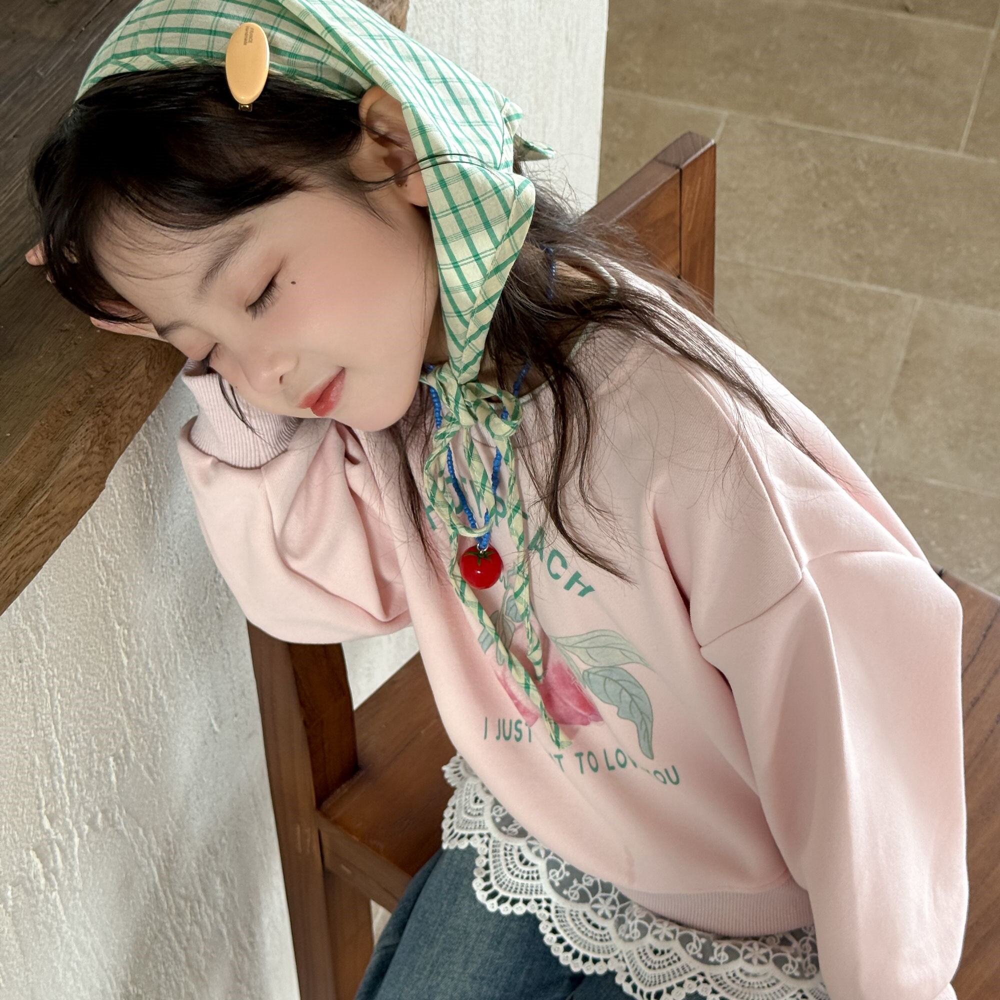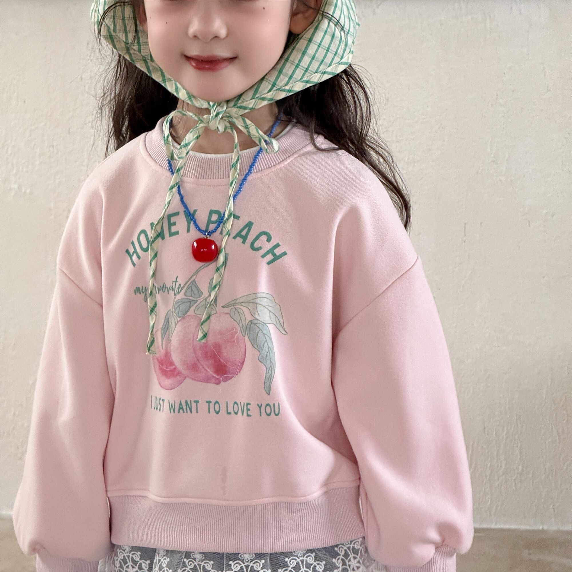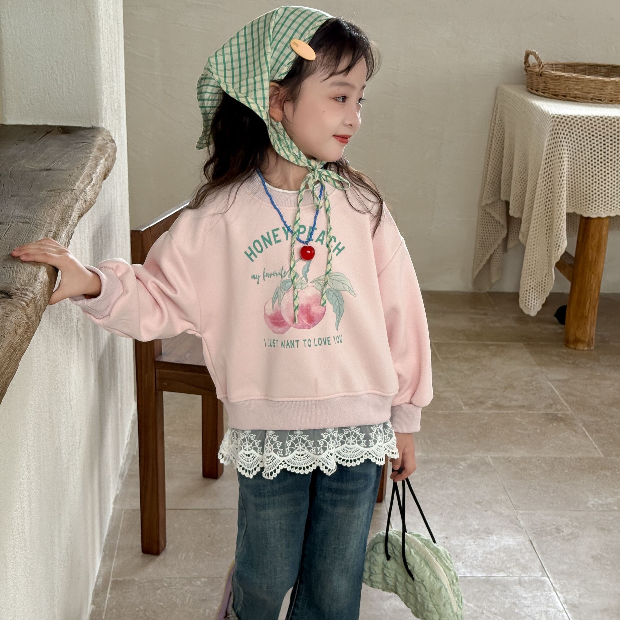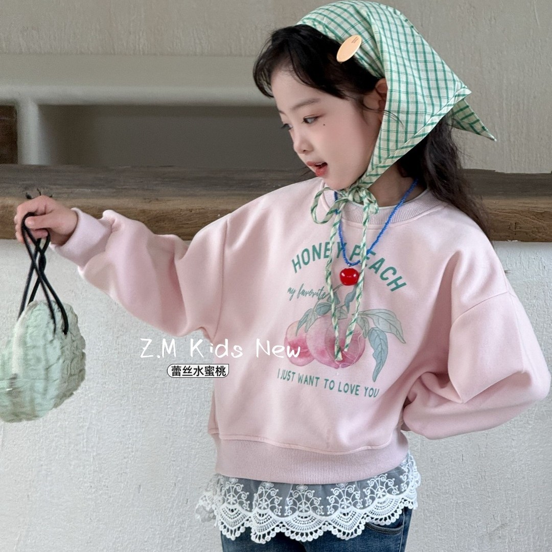 【蕾丝水蜜桃】2025秋季女童衣服甜美假两件上衣儿童圆领长袖卫衣