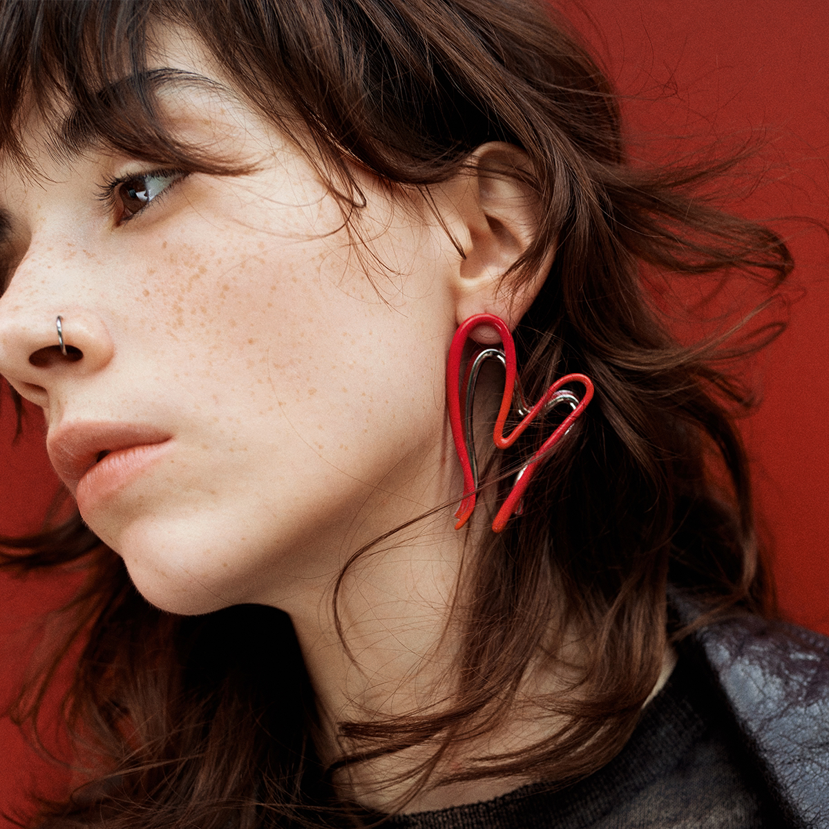 情人节礼物偷心系列爱心造型大耳环珐琅单只新款耳环耳钉原创设计