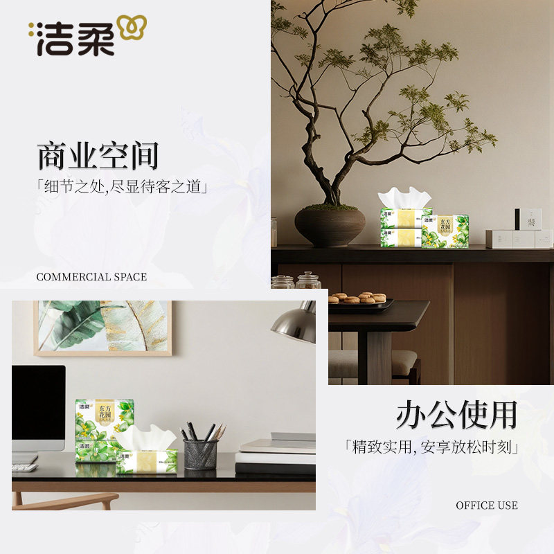 洁柔东方花园抽纸100抽家用实惠装餐巾纸面巾纸大包擦手卫生纸巾