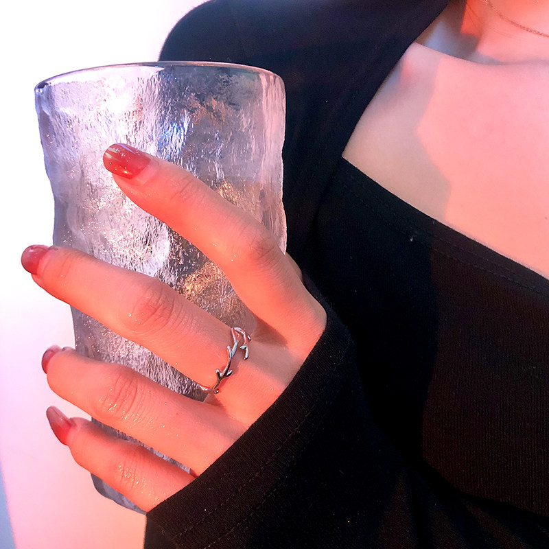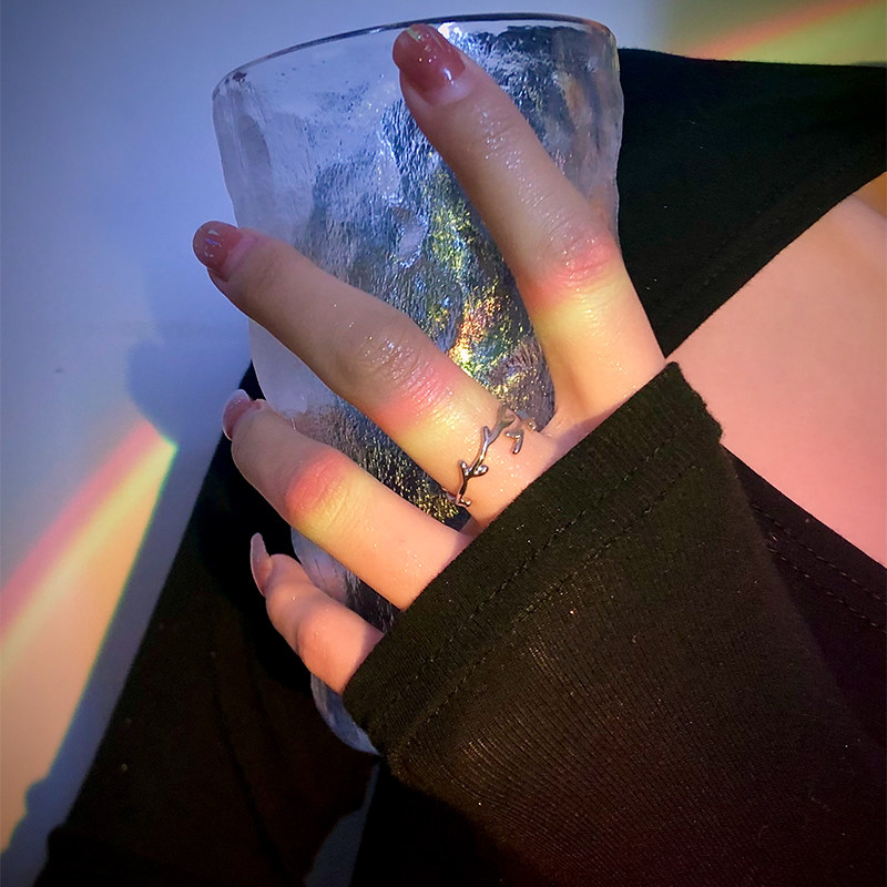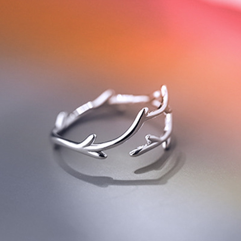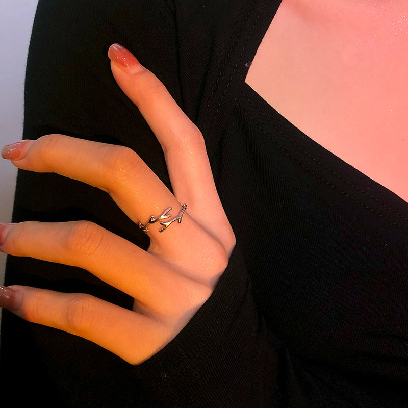 一鹿有你戒指女小众设计鹿角素圈开口戒指女ins潮情侣对戒食指环