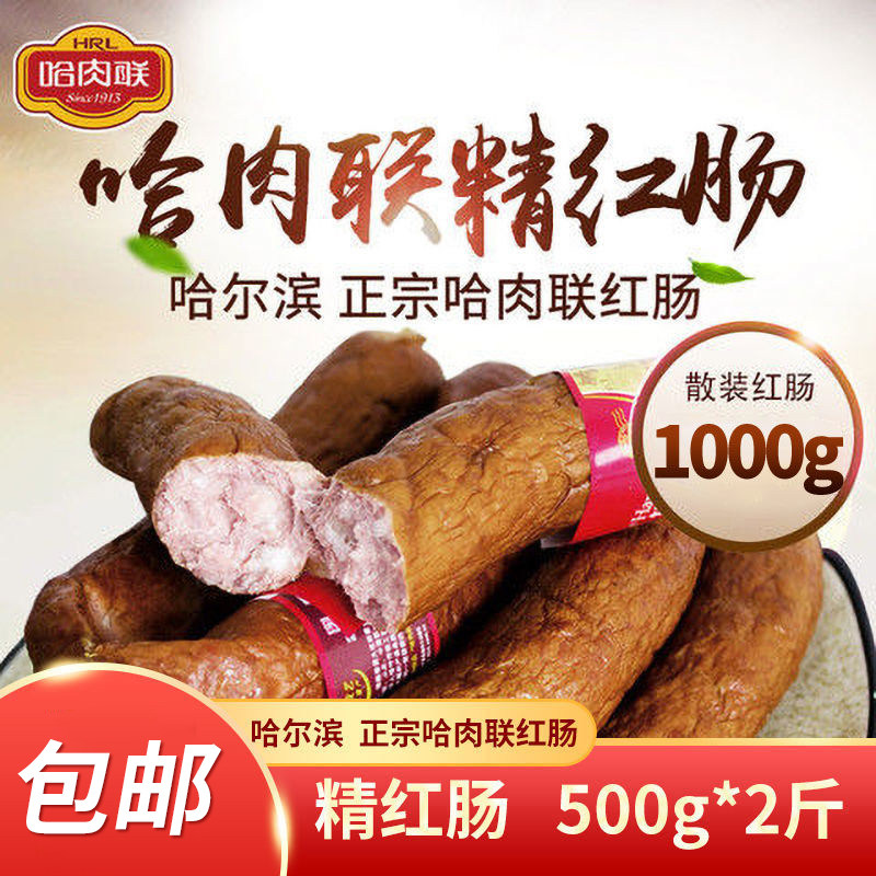 哈肉联红肠 散装计量称重 精红肠含肥肉丁2袋*500g 3-4根/袋