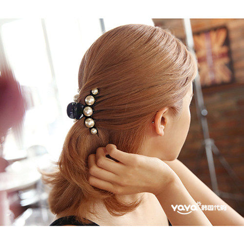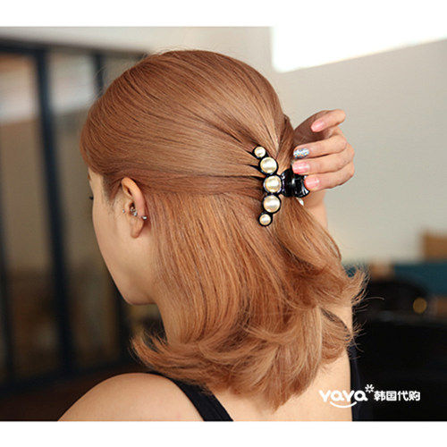 韩国发饰头饰 中号小香风珍珠抓夹发抓头发夹子 百搭自然淑女气质