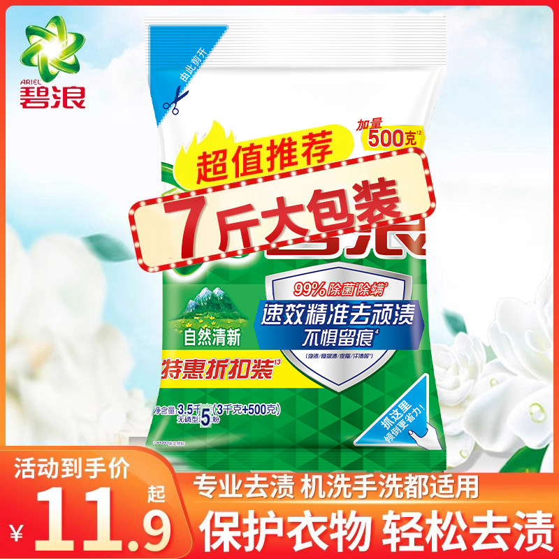 碧浪洗衣粉3.5kg正品除菌除螨去渍自然清新香味持久香官方旗舰店