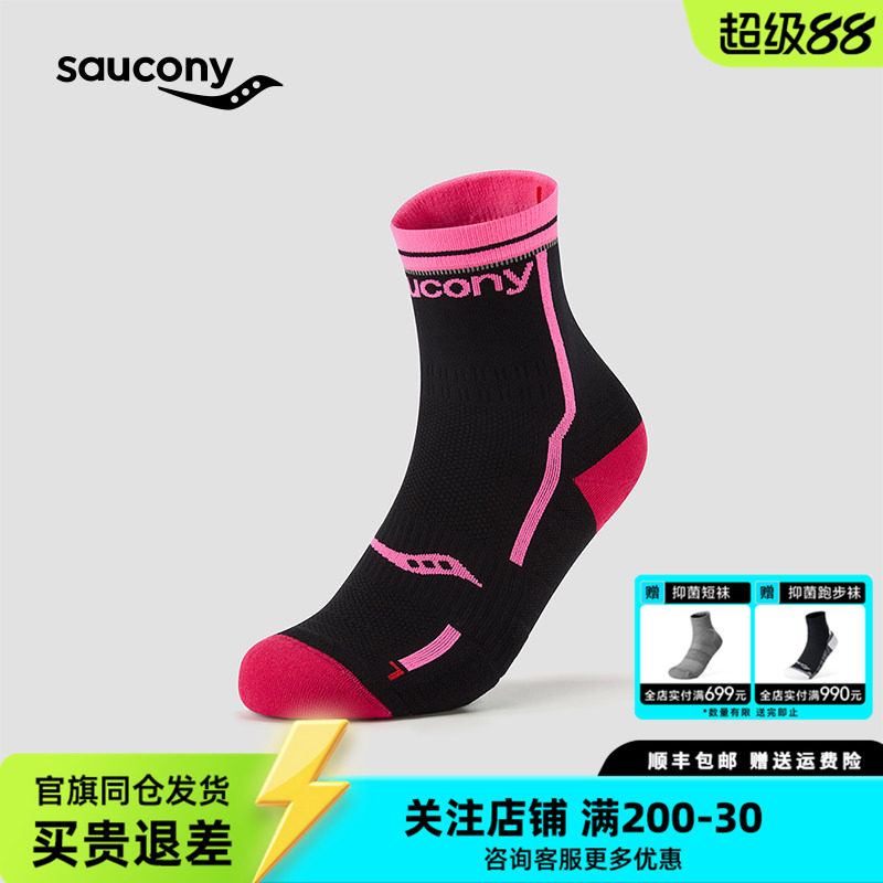 Saucony索康尼官方防护包裹感3A抗菌竞速跑步透气吸汗中筒运动袜