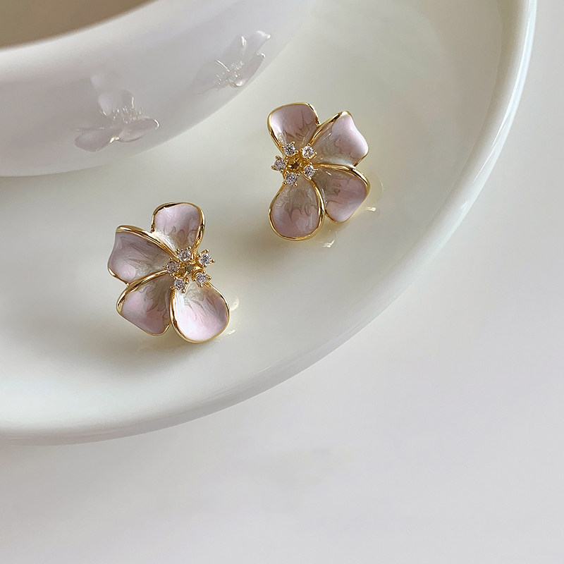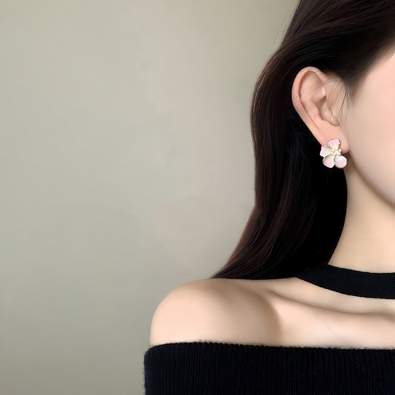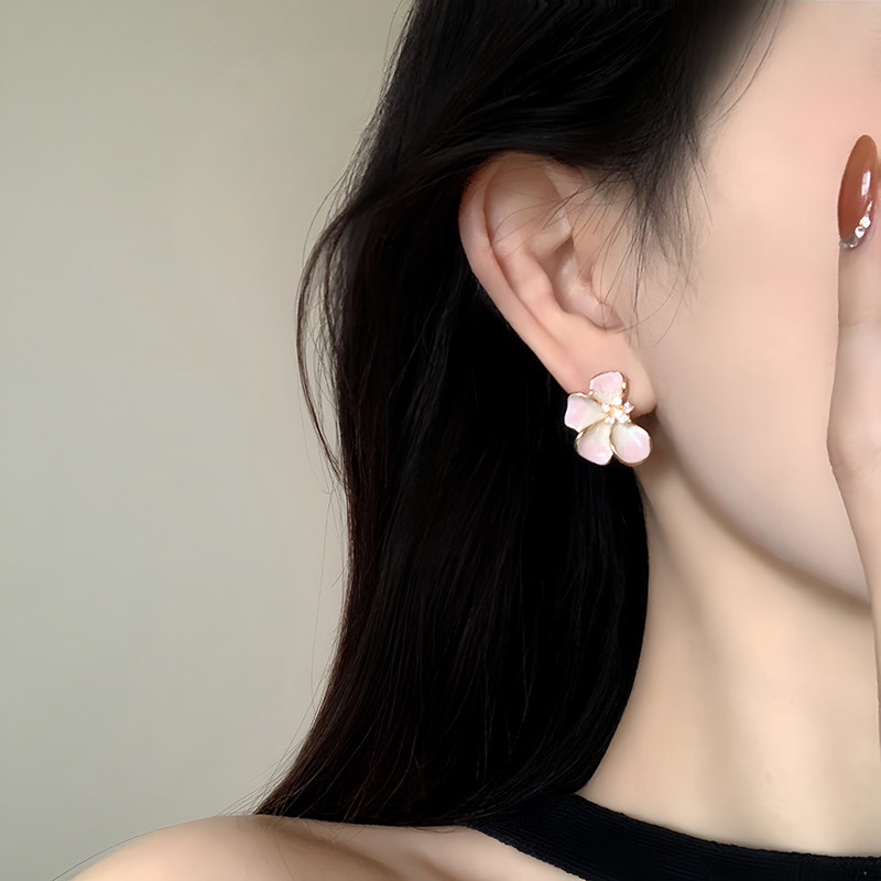 独特设计感粉色珐琅花朵耳钉2025新款气质高级感独特小众甜美耳环