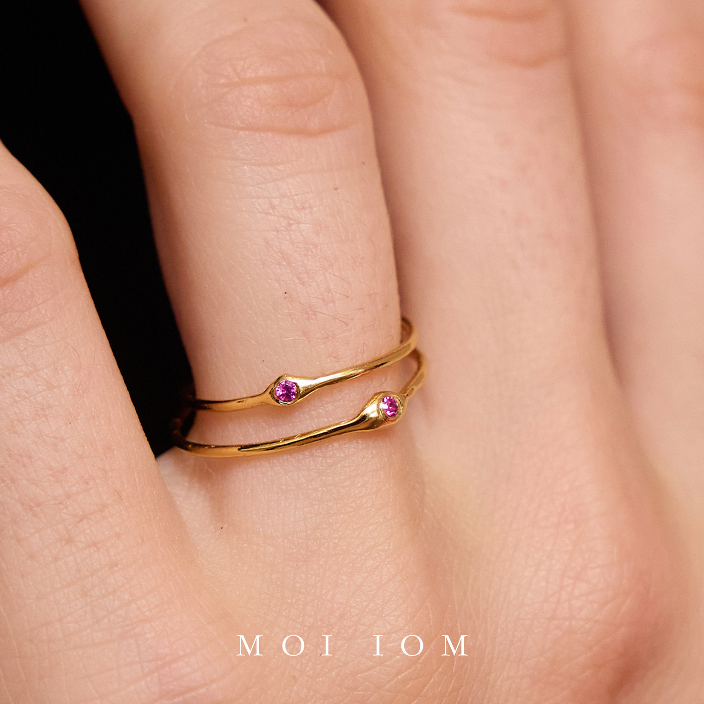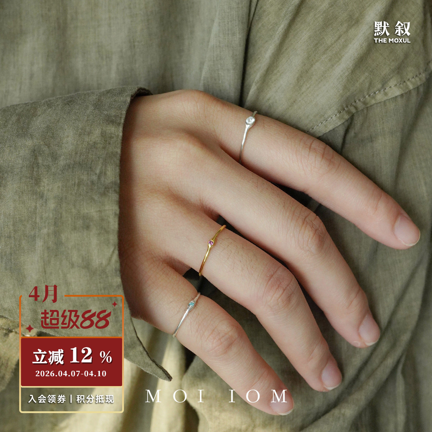 MOI IOM 纯银极细宝石戒指 原创设计小众镶嵌银饰配饰叠戴 默叙