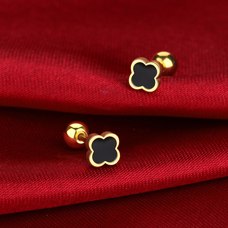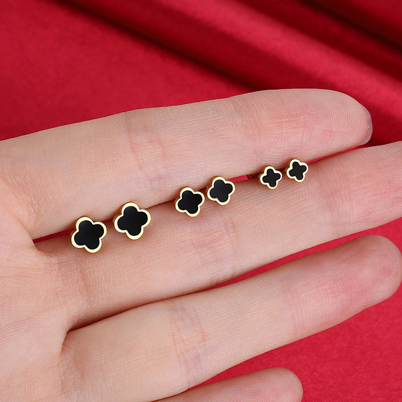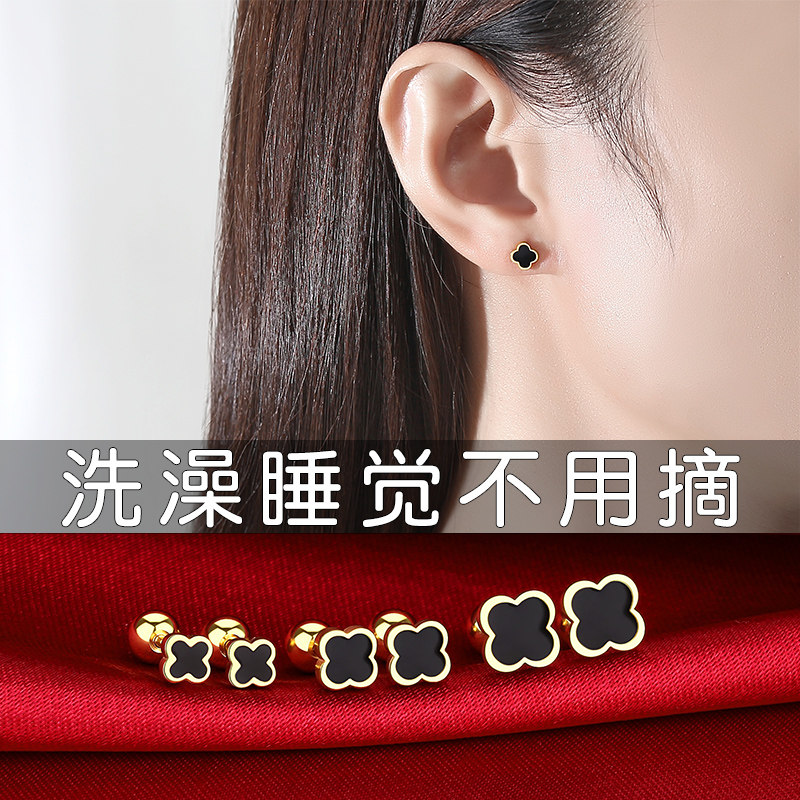 1对 幸运四叶草小耳钉女迷你精致气质耳骨钉女小巧简约黑色防耳堵