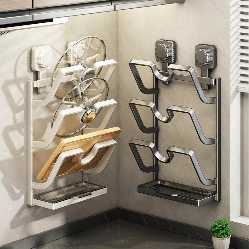 吸盘式锅盖架免打孔厨房吸盘式置物架锅盖砧板支架多层厨房支架厂