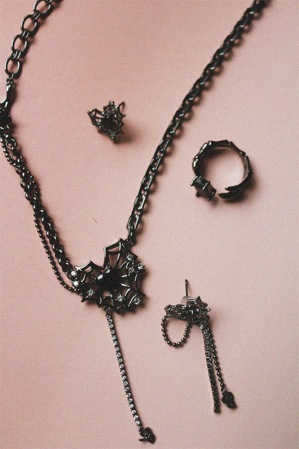 Shiitake暗黑系甜酷小众设计蜘蛛荆棘链条不规则耳钉项链开口戒指