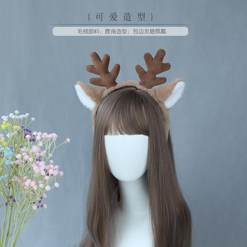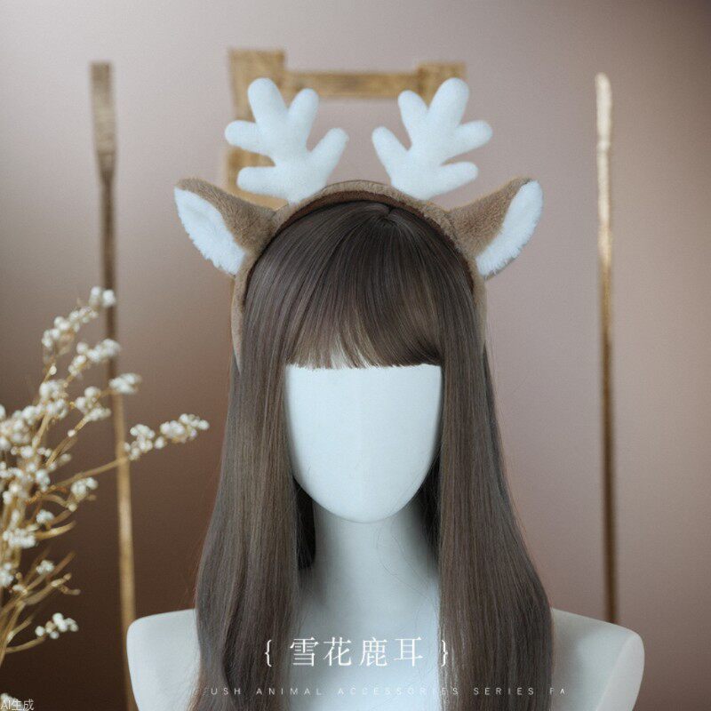 圣诞节装扮雪花鹿耳鹿角发箍cosplay配饰仿真兽耳毛绒头饰发饰