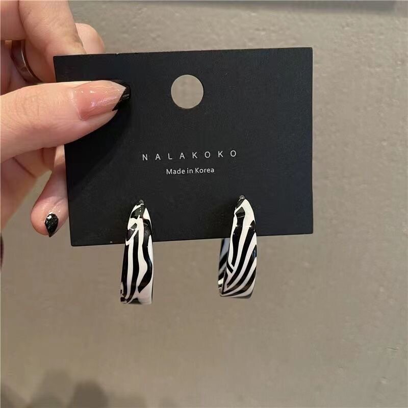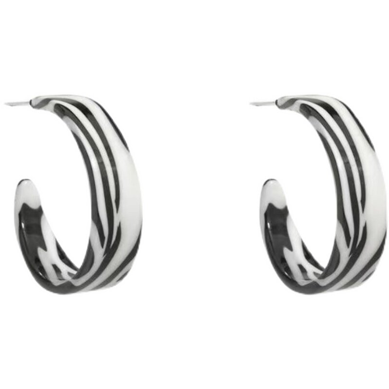韩国斑马纹夸张欧美耳钉女亚克力港风耳圈高级感耳环冷淡风耳饰