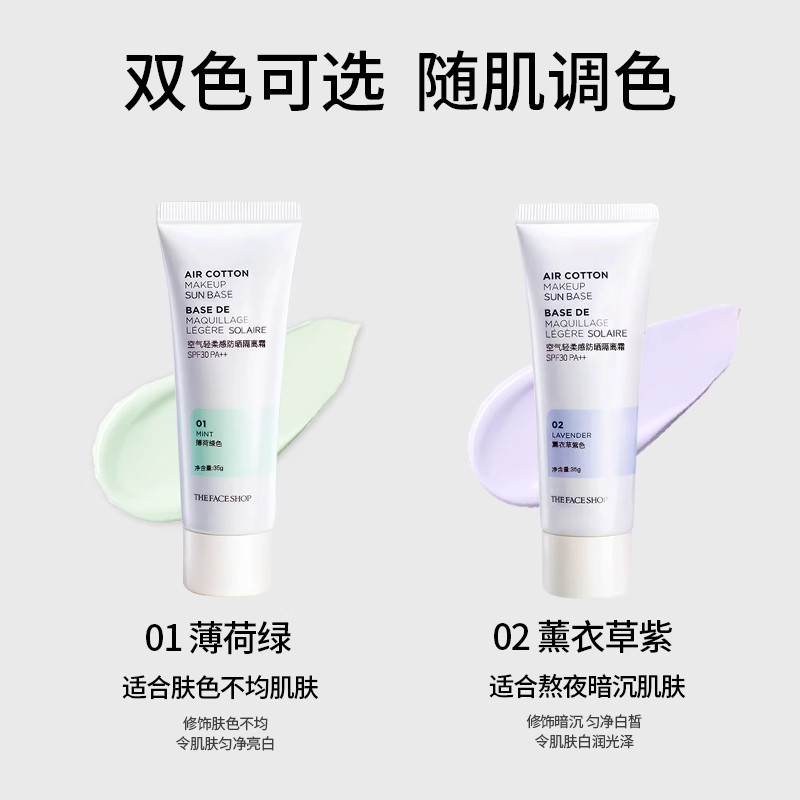 菲诗小铺保湿美白空气轻柔感隔离霜素颜霜防晒打底瑕妆前乳女正品