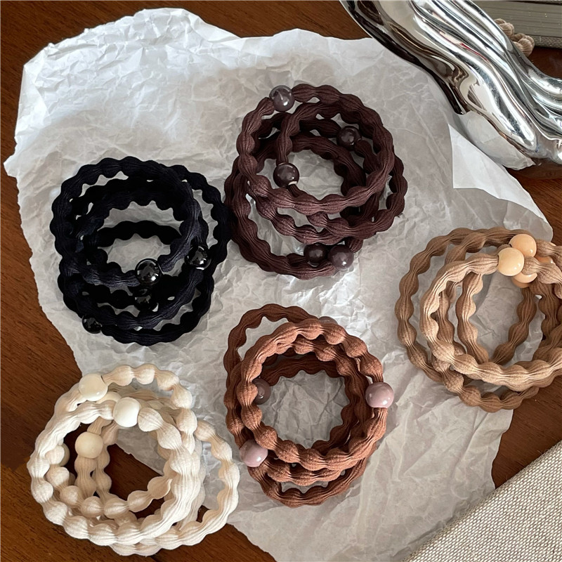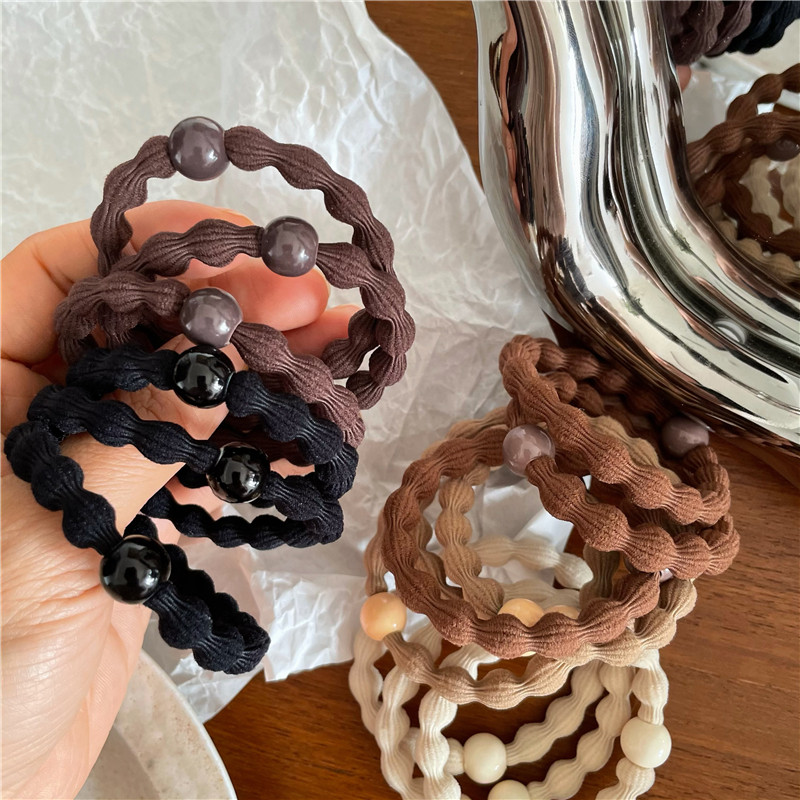 气质黑咖色系 豆豆高弹力皮筋 时尚串珠扎头发绳韩版基础皮筋新款