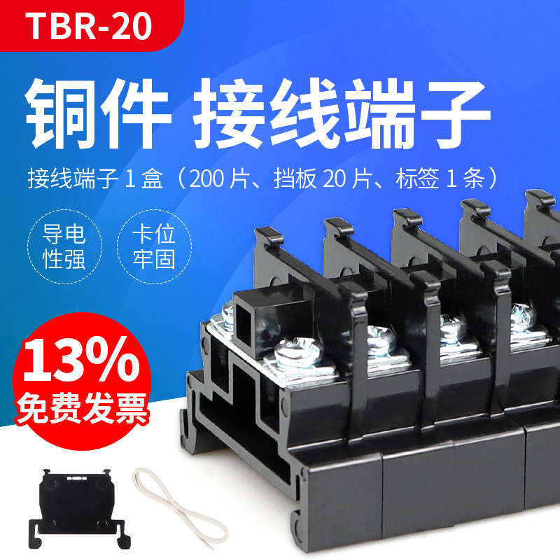 铜件 TBR-20接线端子导轨式组合20A端线排导轨组合式接线排不断脚