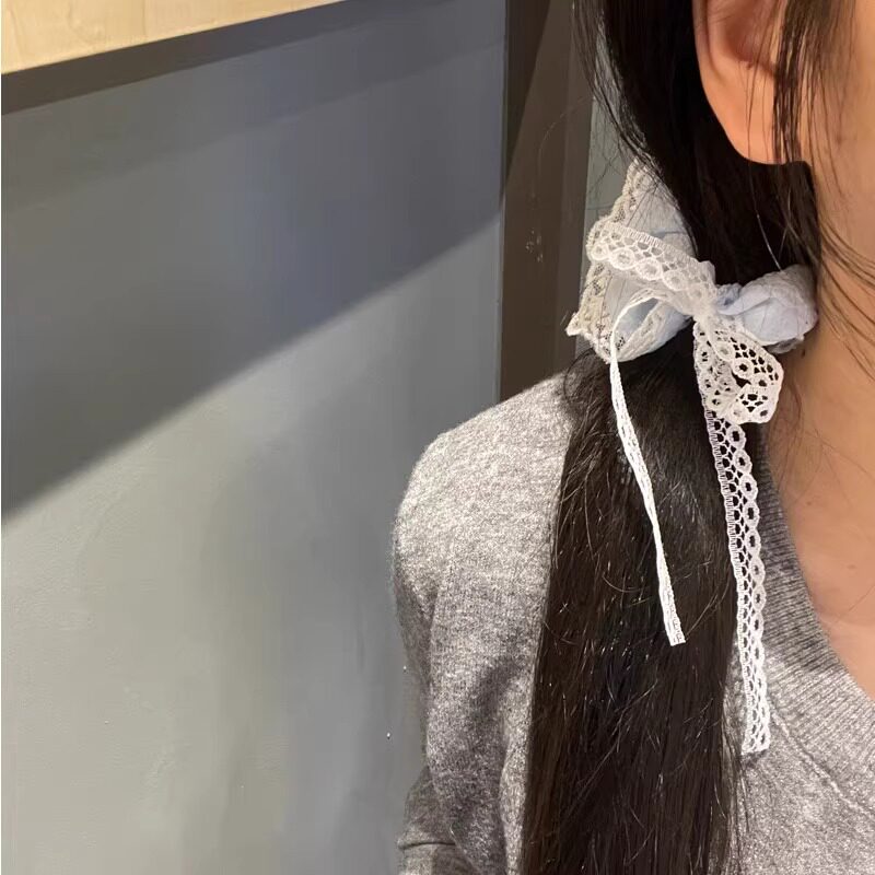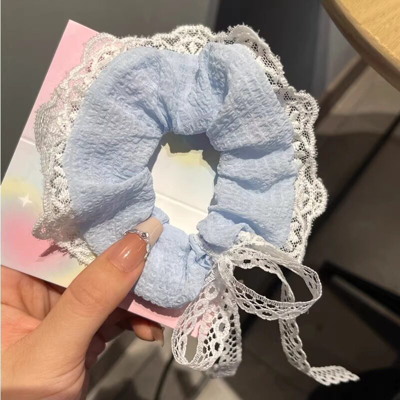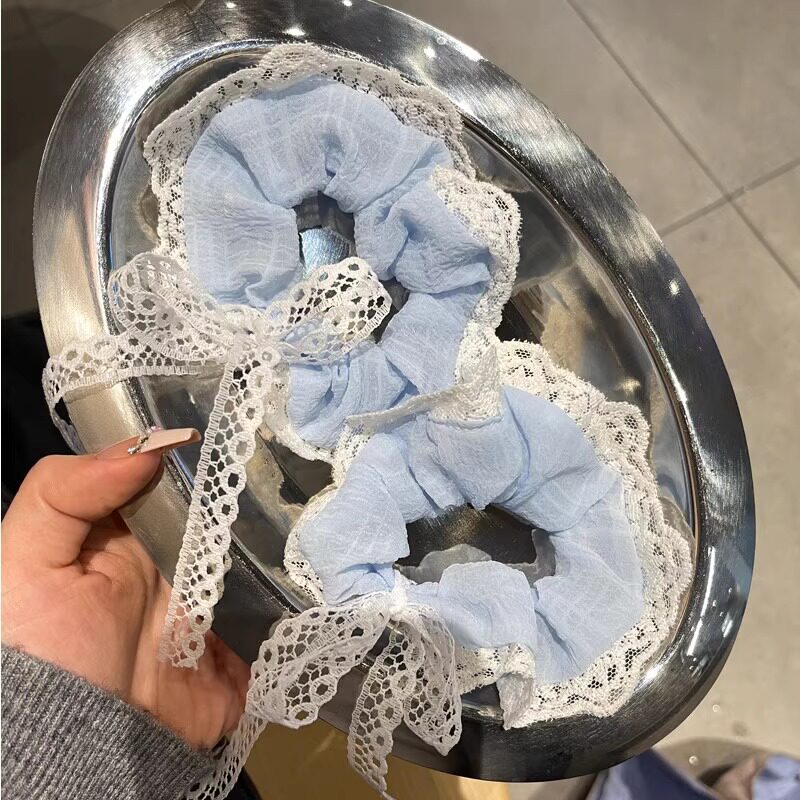 韩系蕾丝飘带大肠发圈高级感2025新款丸子头绳高马尾扎头发绳发饰