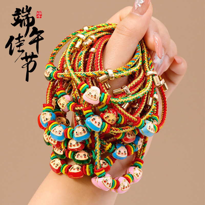2025新款端午节五彩绳手工diy编织女小粽子手链儿童宝宝手绳红绳