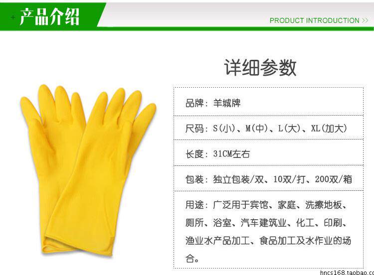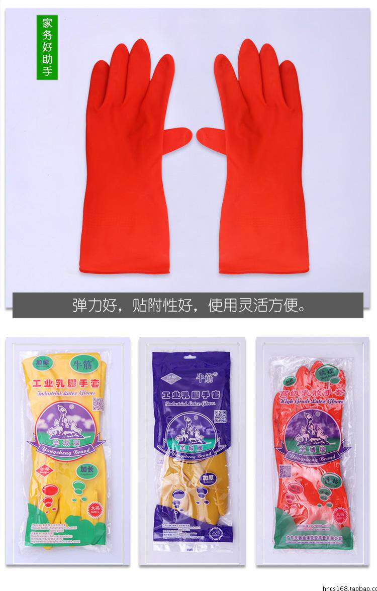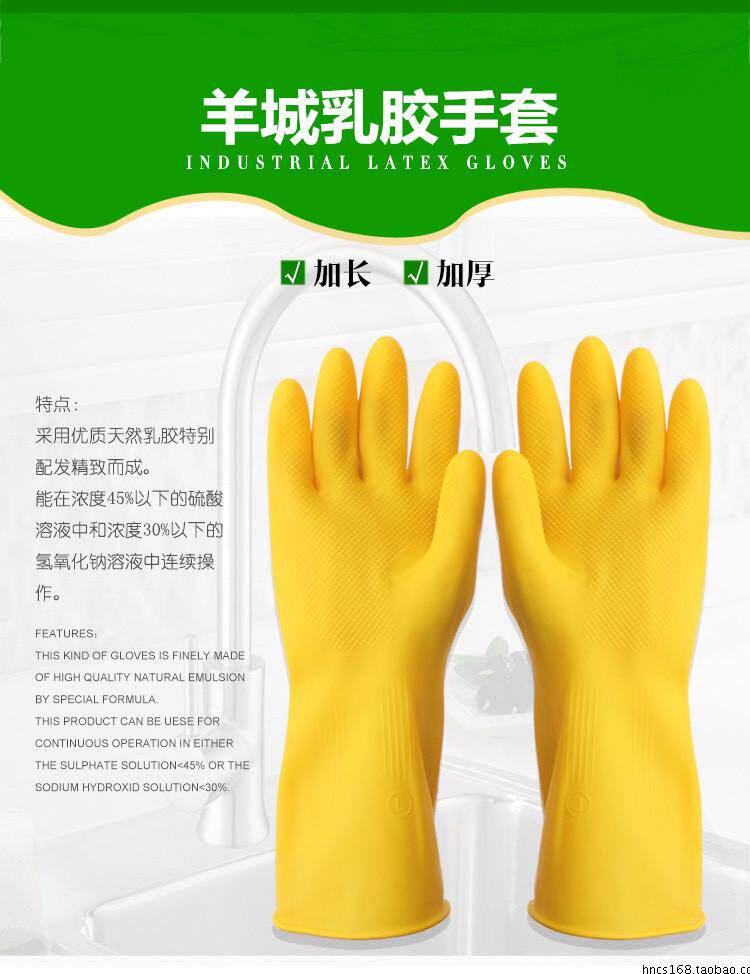 羊城乳胶手套家务洗碗衣手套橡胶加厚牛筋耐酸碱工业劳保手套耐用