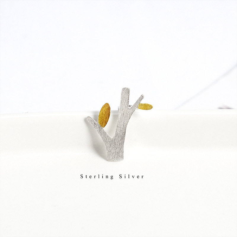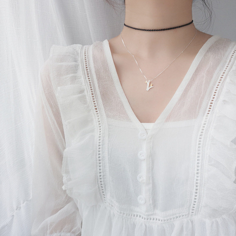 正品s925纯银项链女锁骨链简约个性树枝吊坠镀金时尚潮流