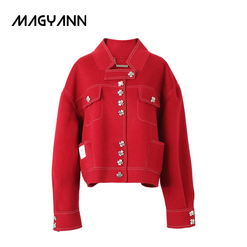 【明星同款】Magyann设计师原创2026春安哥拉红小立领口袋短大衣