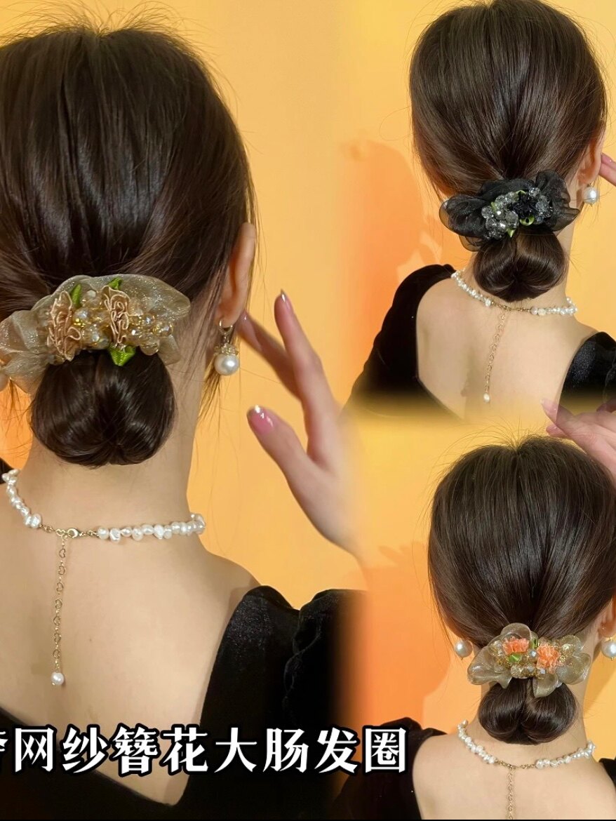 2025新款气质发圈高级感发绳头绳女扎马尾丸子头盘发大肠头花发饰