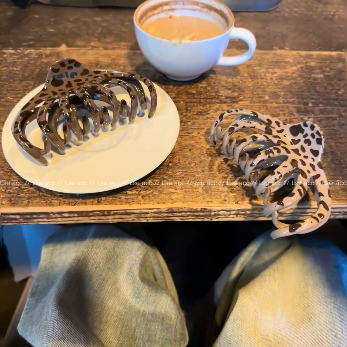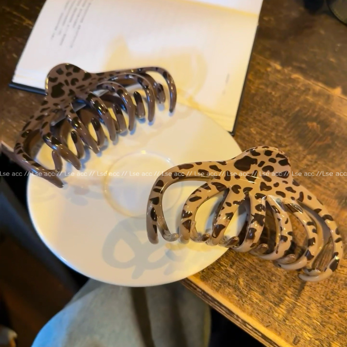 韩国同款秋冬新款豹纹抓夹高级感后脑勺大号盘发鲨鱼夹设计发饰