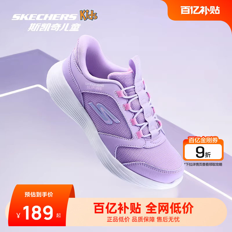 Skechers斯凯奇儿童闪穿鞋春秋校园体训鞋女童一脚蹬轻便运动鞋
