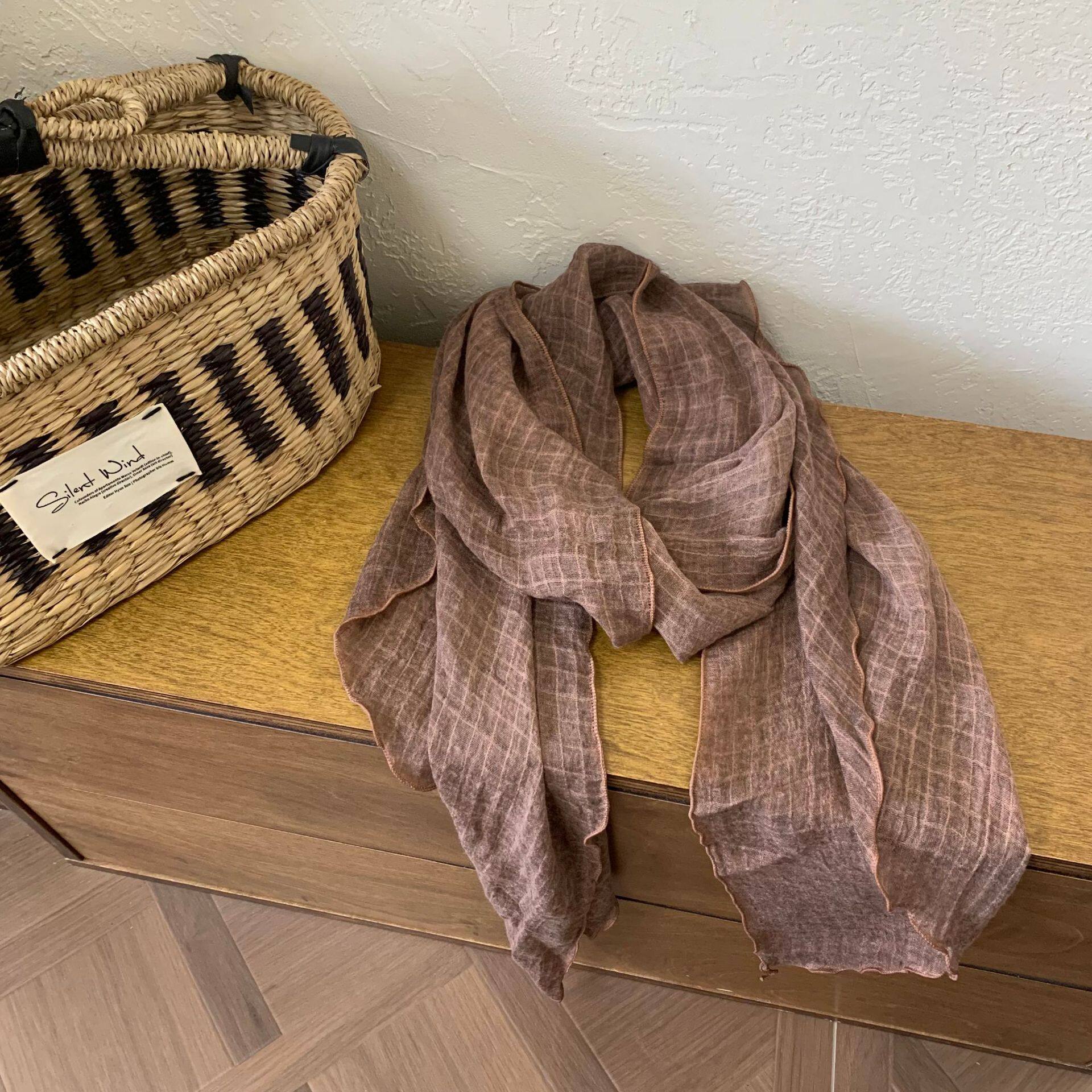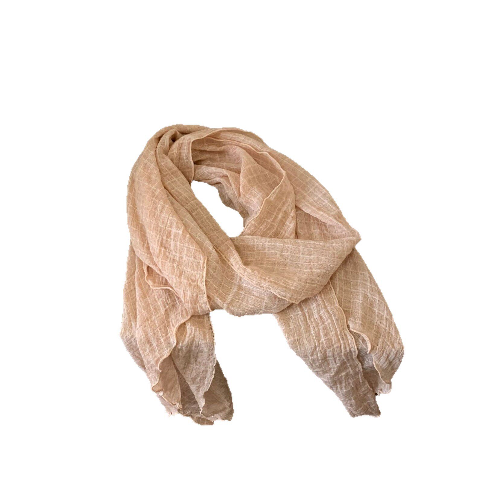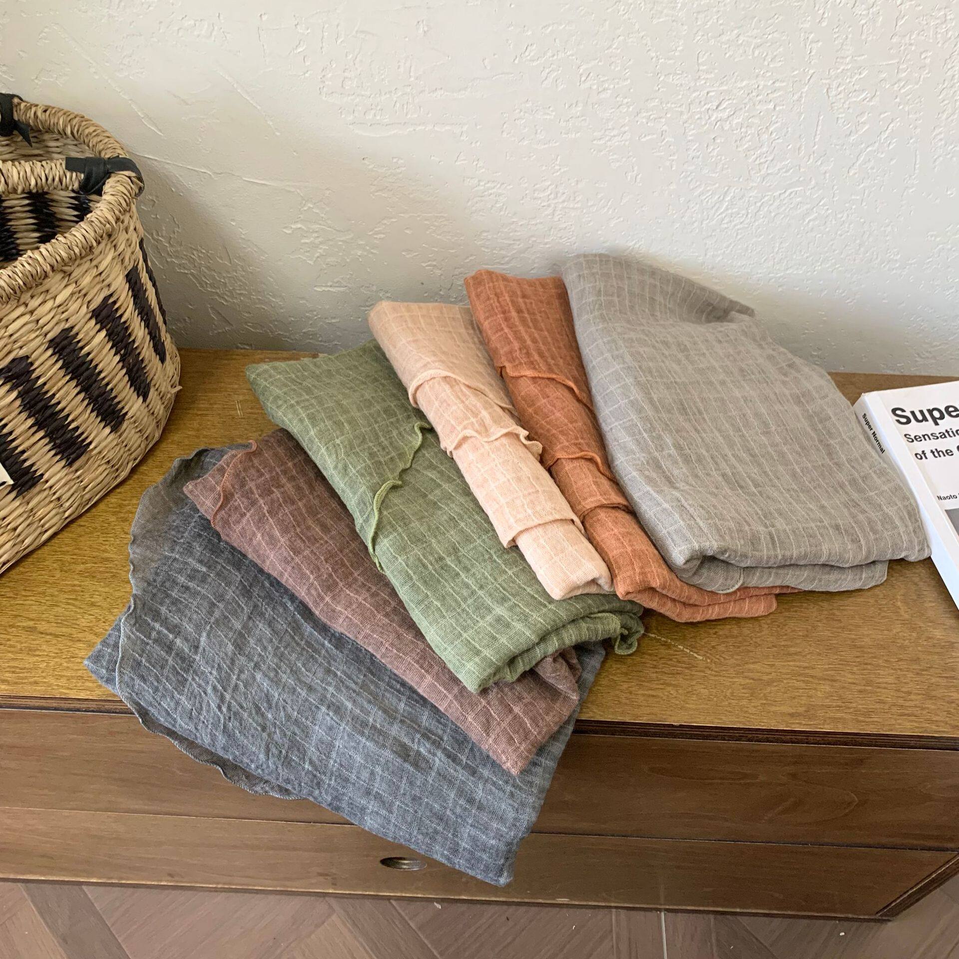 复古文艺范棉麻围巾女华夫格褶皱斜角边薄款纱巾服饰搭配纯色