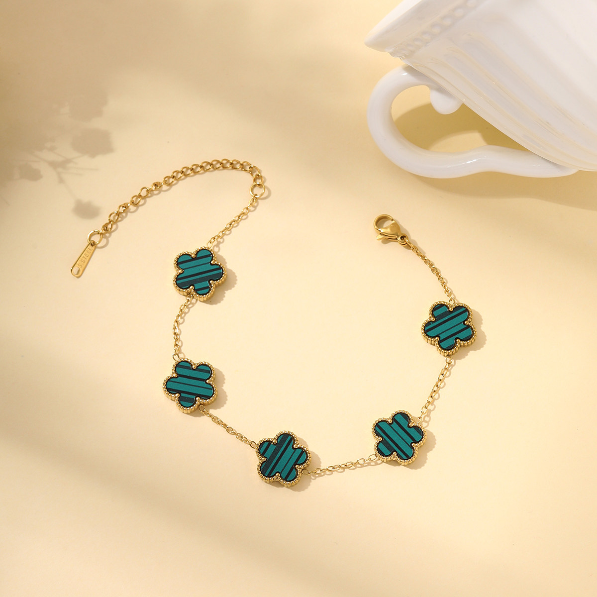 五叶草 金手链女不掉色黑色 四叶草新款轻奢小众精致高颜值学生党