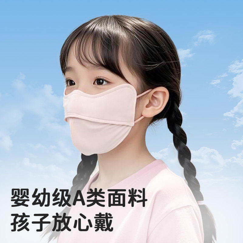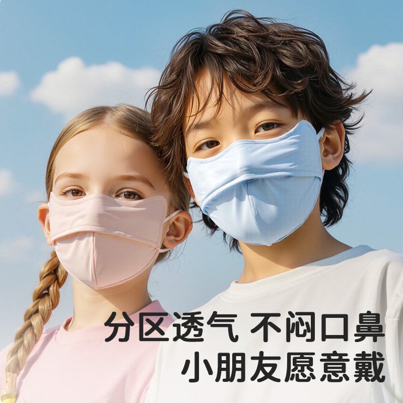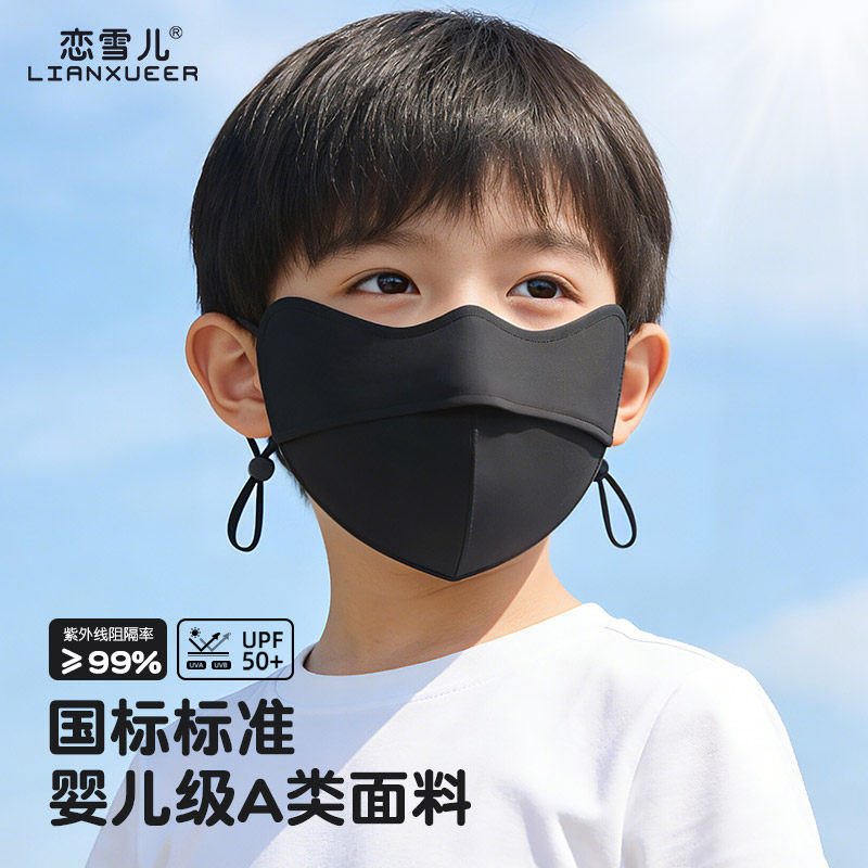 儿童防晒口罩男童防紫外线女3-8岁冰丝A类面料9到12岁小学生黑色