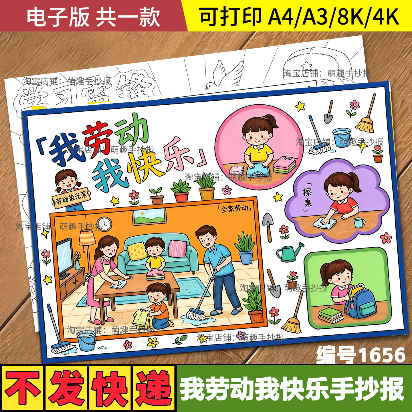 51五一劳动节手抄报模板我热爱主题快乐光荣儿童画绘画电子版小报