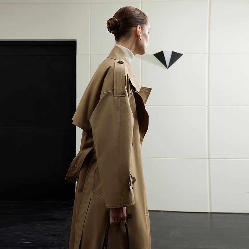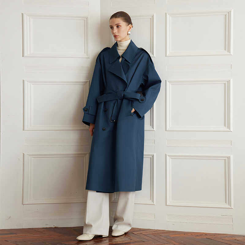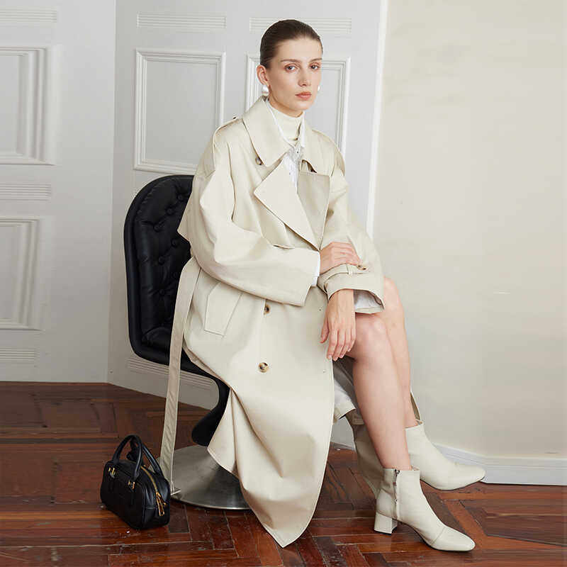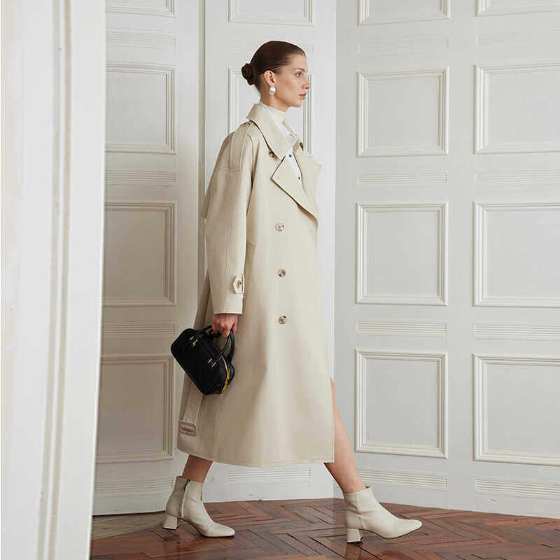 NANCYLILI25秋秋新款英伦风气质双排扣长款过膝风衣外套宽松女