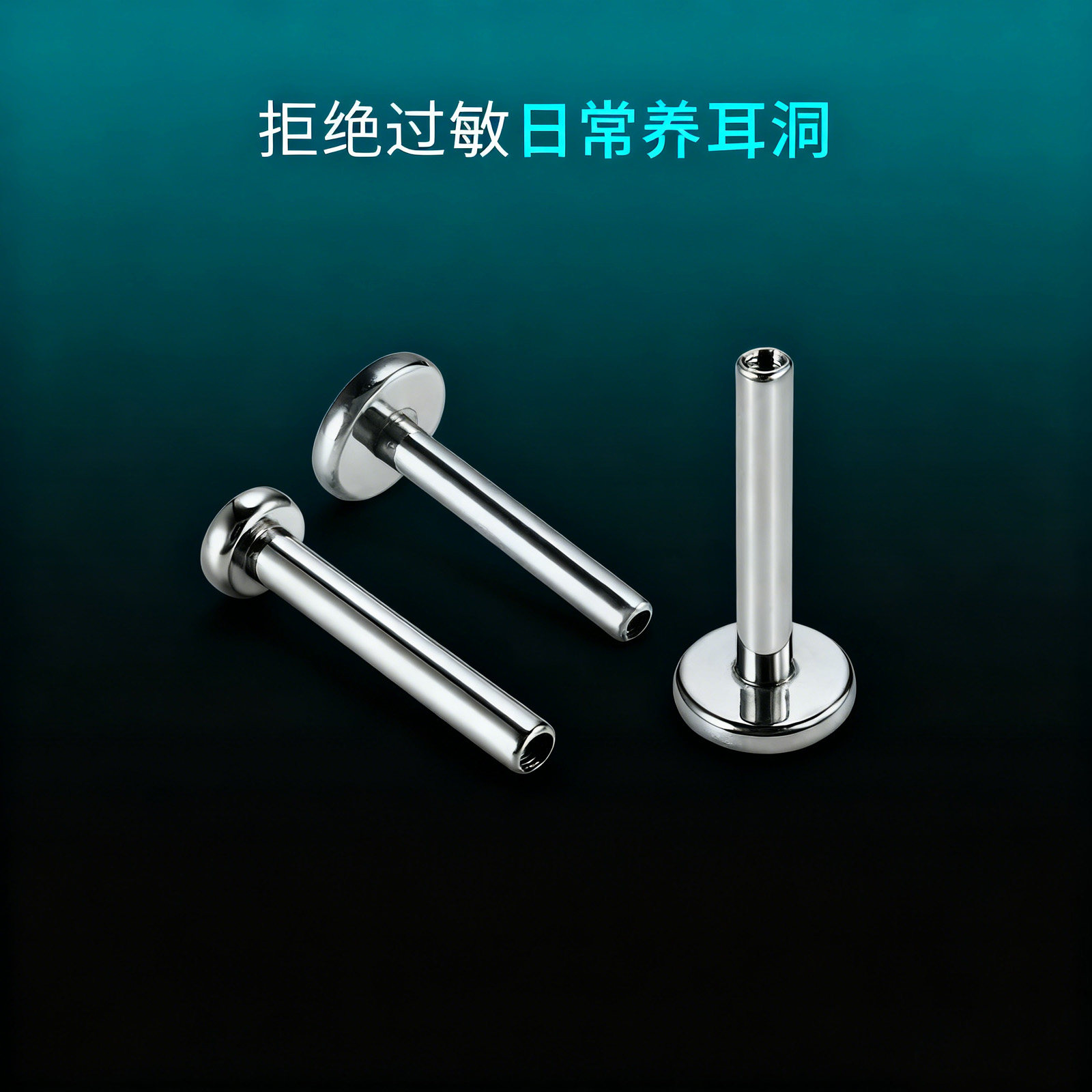 F136医用钛合金小底座杆子内螺纹圆盘平底耳钉耳骨耳蜗钉唇钉舌钉