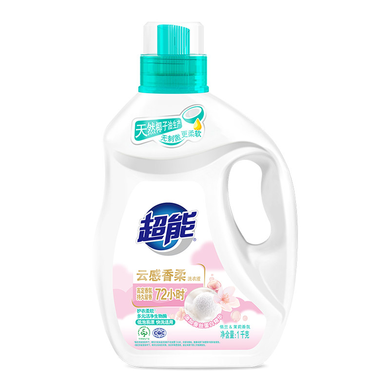 超能洗衣液瓶装1kg(花漾柔护/云感香柔香型随机)