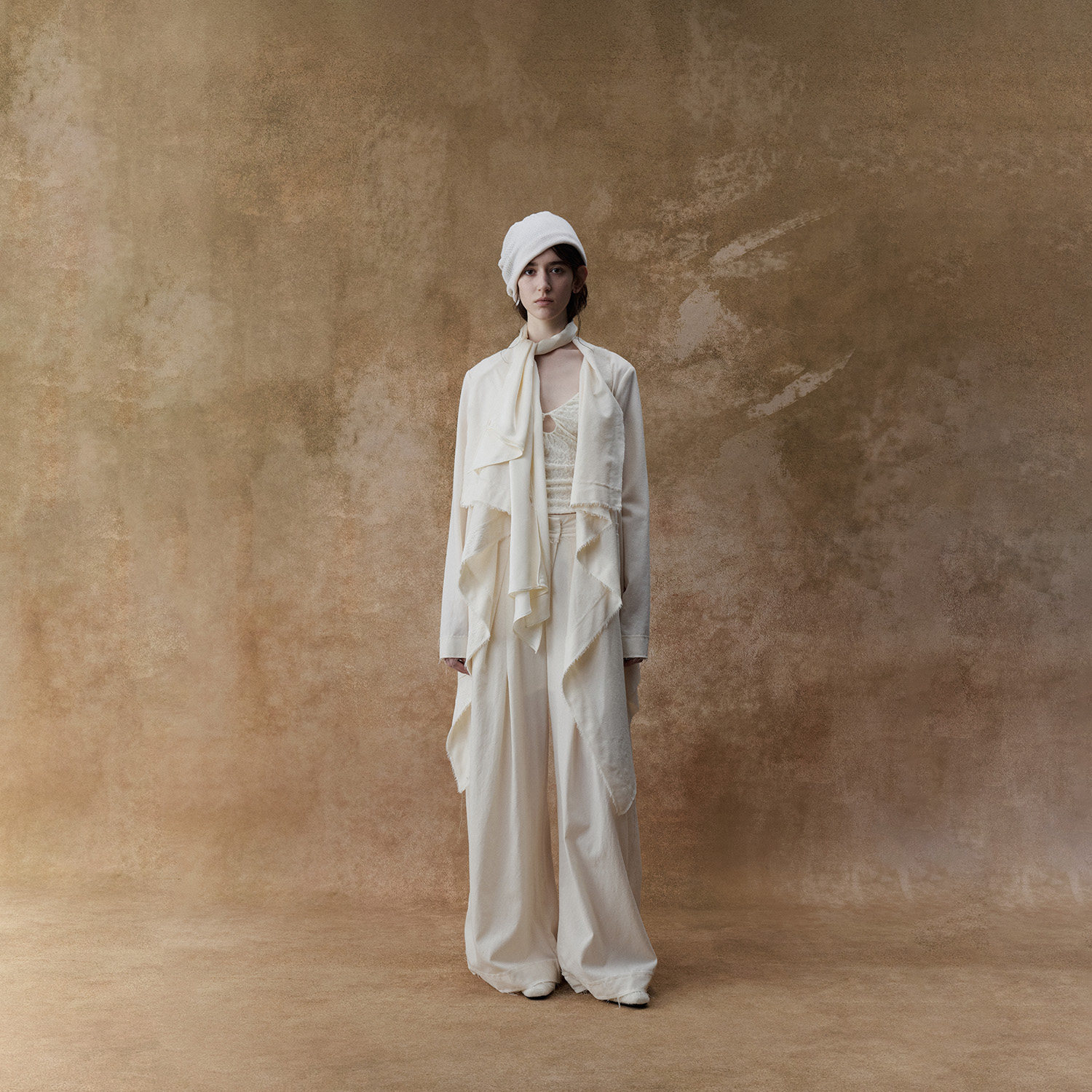 Elywood羊毛蕾丝抽皱背心性感镂空小众设计上衣白色吊带内搭秋冬