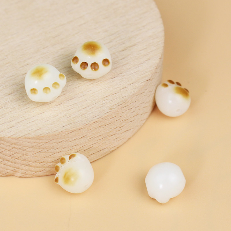 炭烧可爱猫爪白玉菩提根手链散珠子配珠diy串珠菩提手串文玩配件