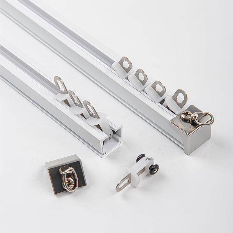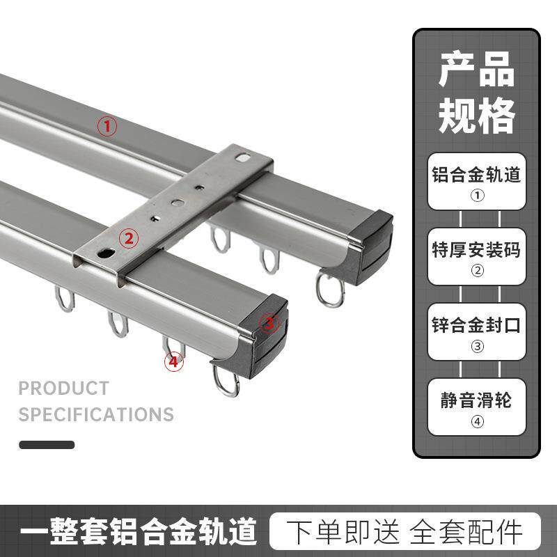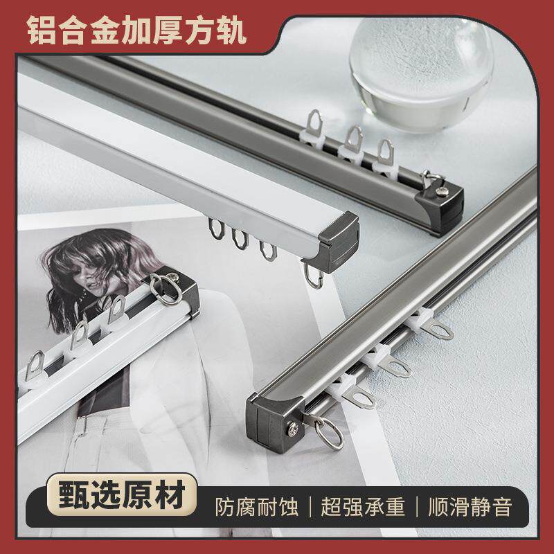 七代铝合金加厚窗帘单双轨道侧装顶装静音直轨道滑轨窗纱杆导轨道