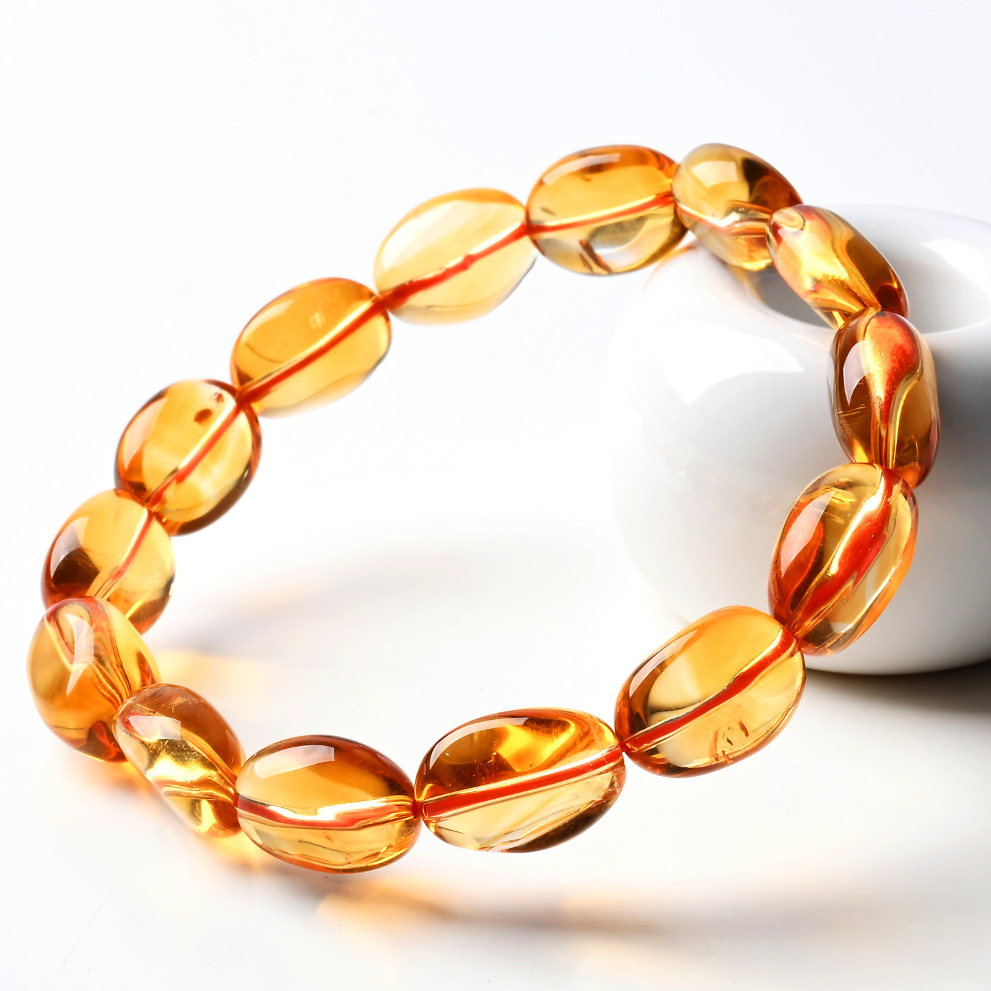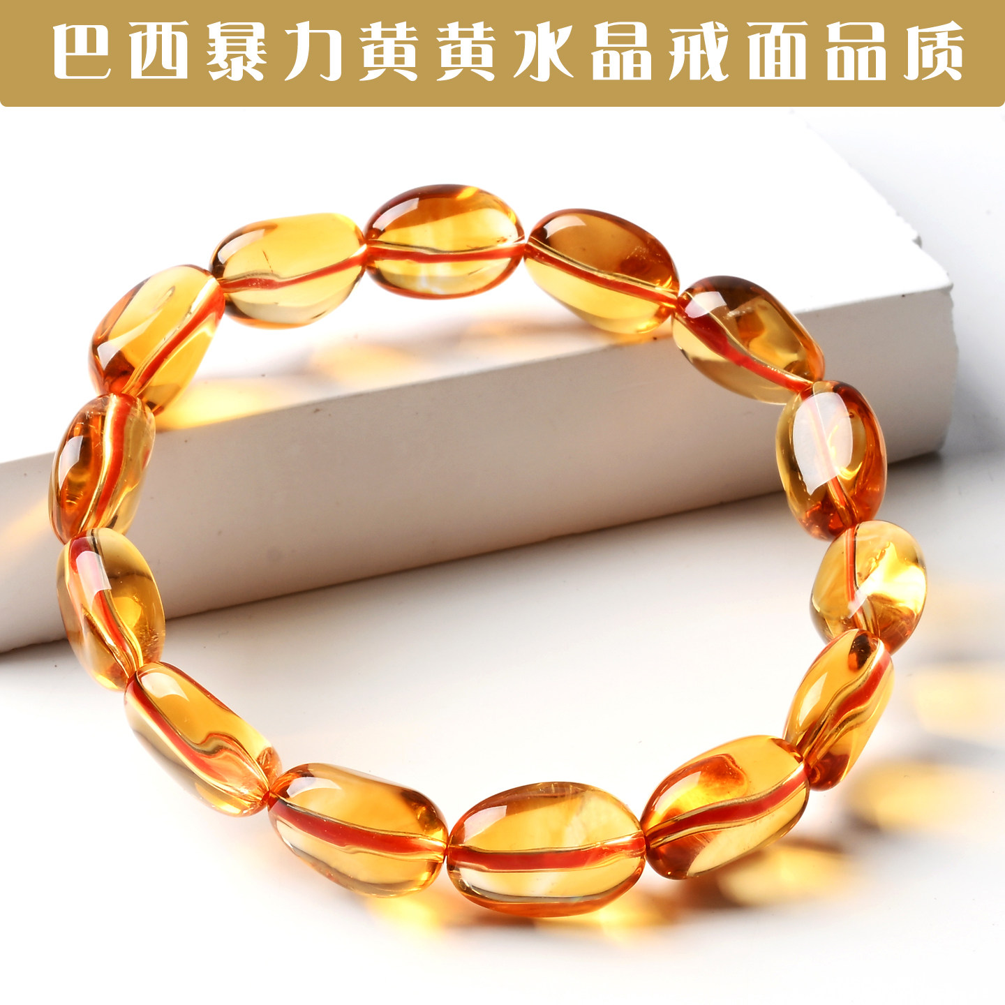 慕饰斋暴力黄天然黄水晶手串糖豆款金红料黄水晶手链男女财富运石