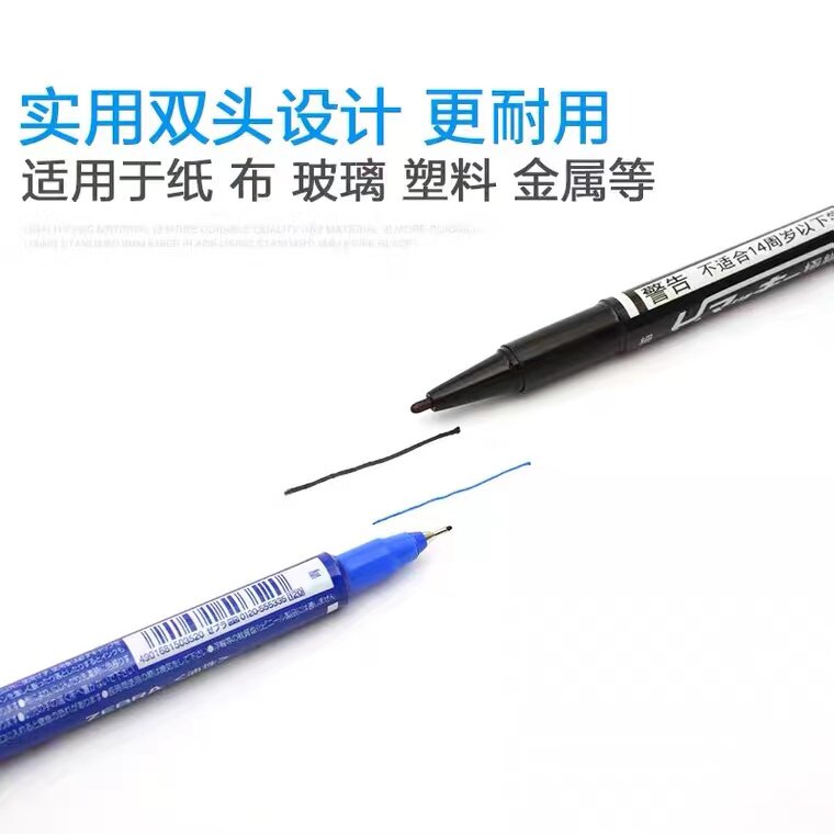 日本ZEBRA斑马记号笔YYTS5油性小双头不掉色马克笔防水快干绘画