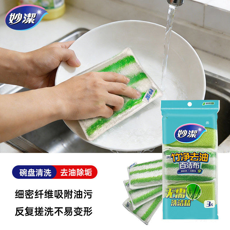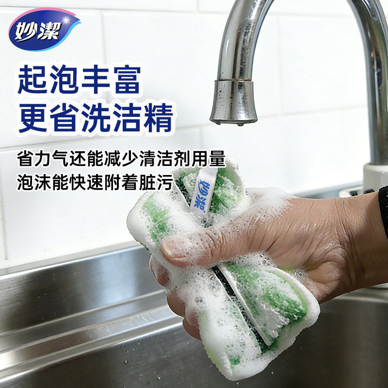 妙洁百洁布聚酯纤维材质去油除垢家用厨房洗碗海绵擦正品实惠装