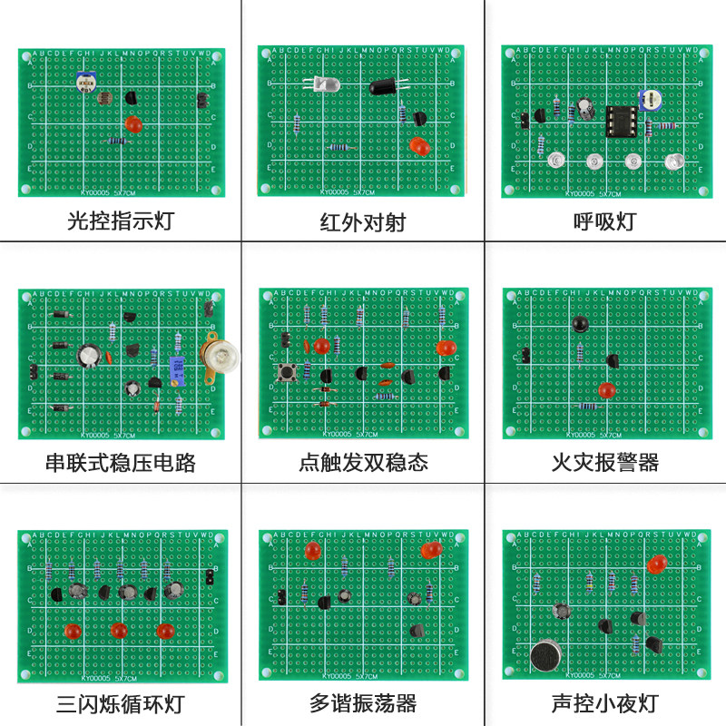 伍陆电子洞洞板新手多孔板电路板焊接练习套件初学者DIY初级元件