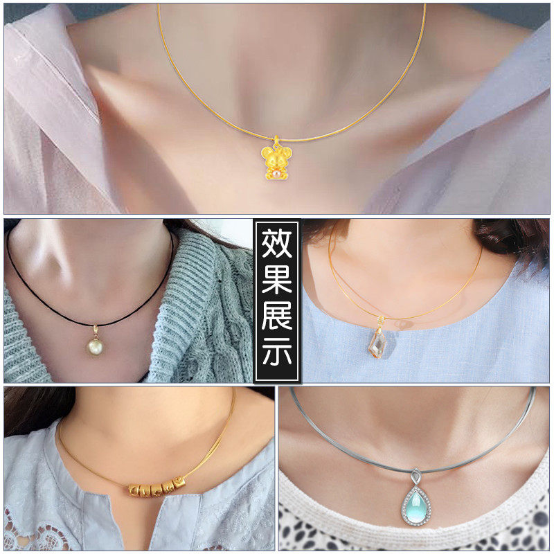 项链绳黄金吊坠挂绳皮绳金色钢丝项圈蜜蜡锁骨链女绳子吊坠绳颈带