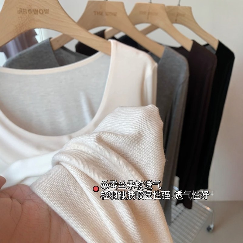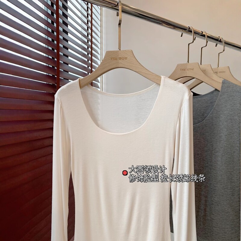 THEWOW 超舒适 桑蚕丝养肤一片式无痕大圆领正肩长袖纯色打底衫女