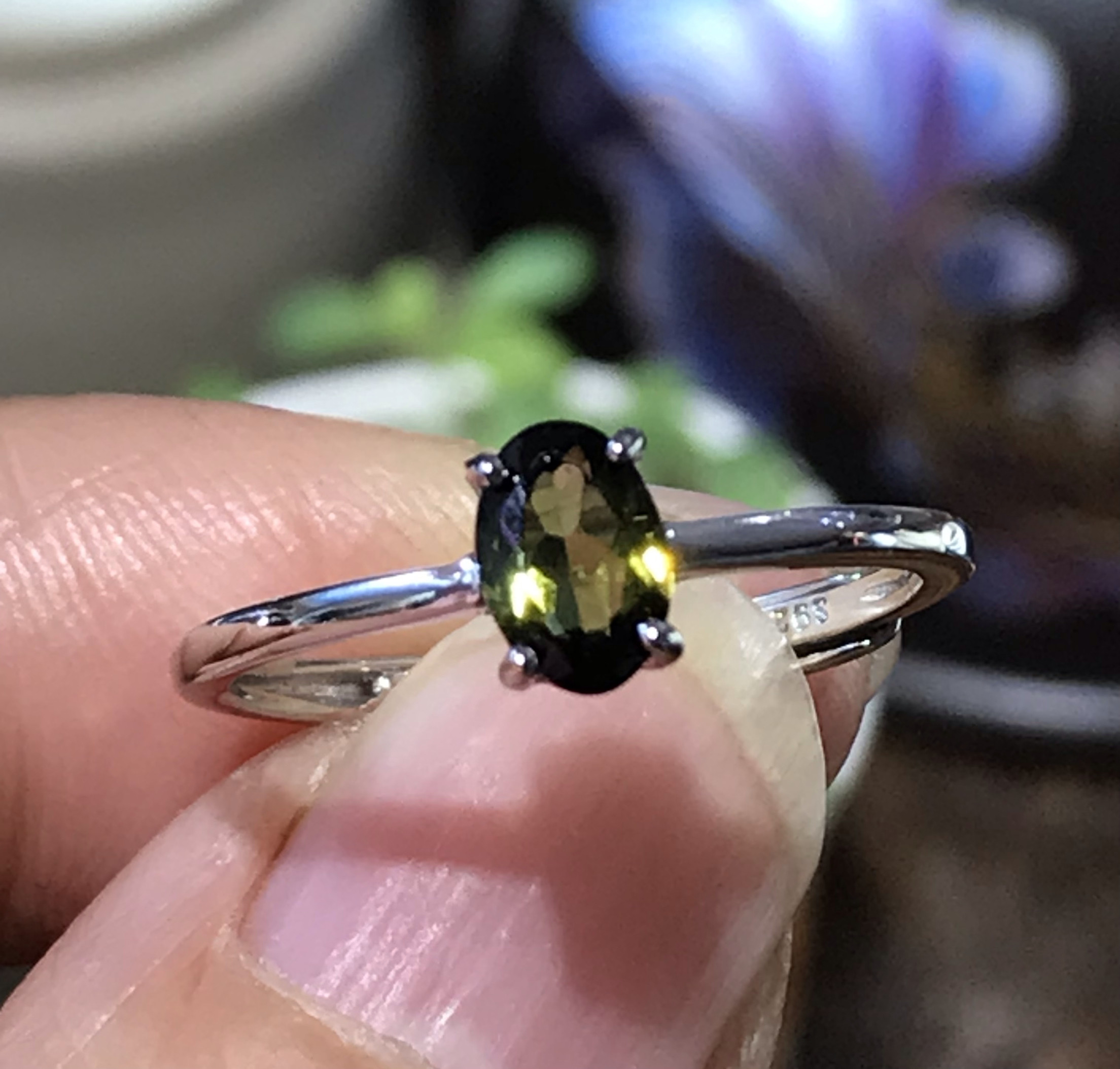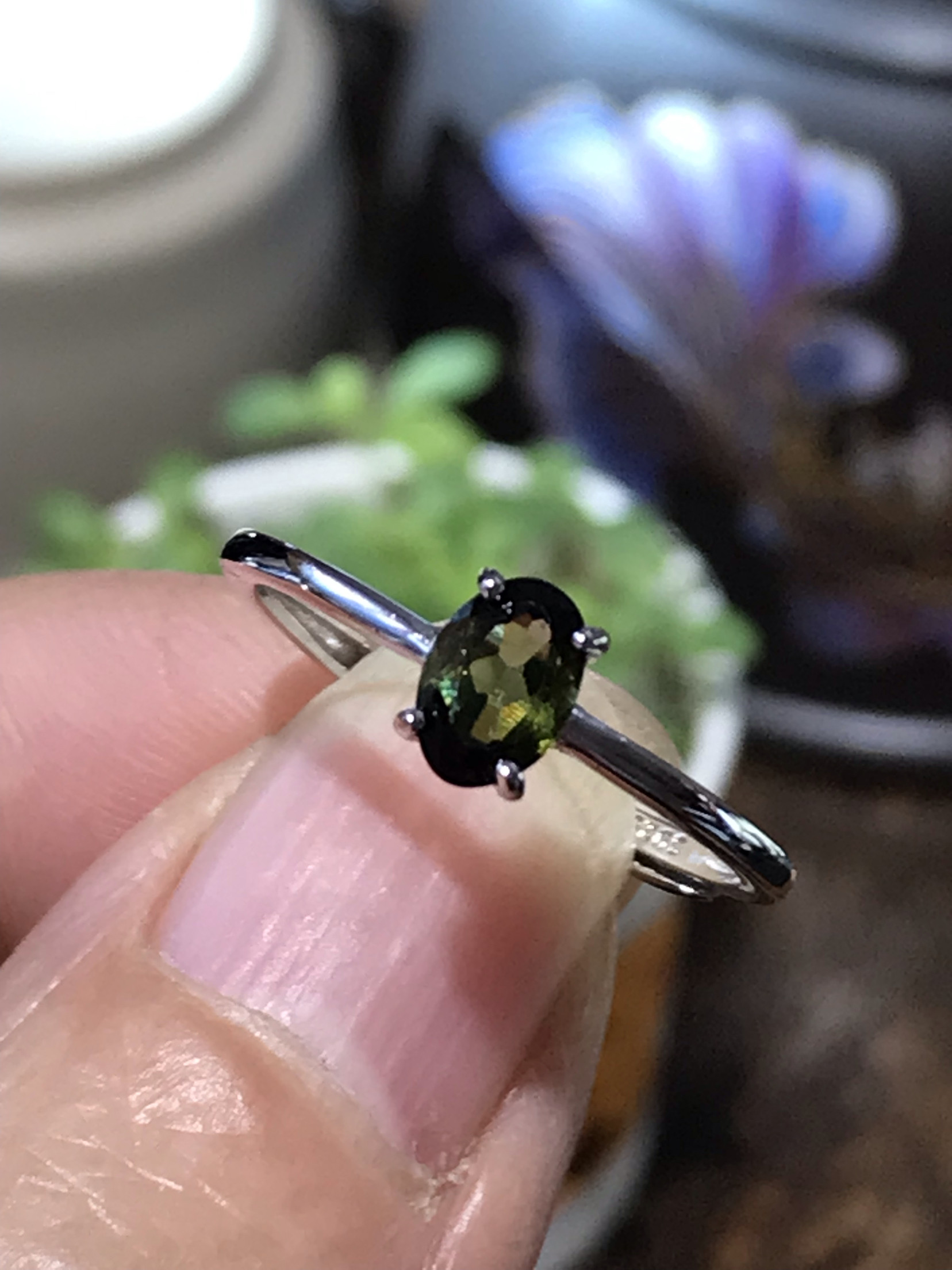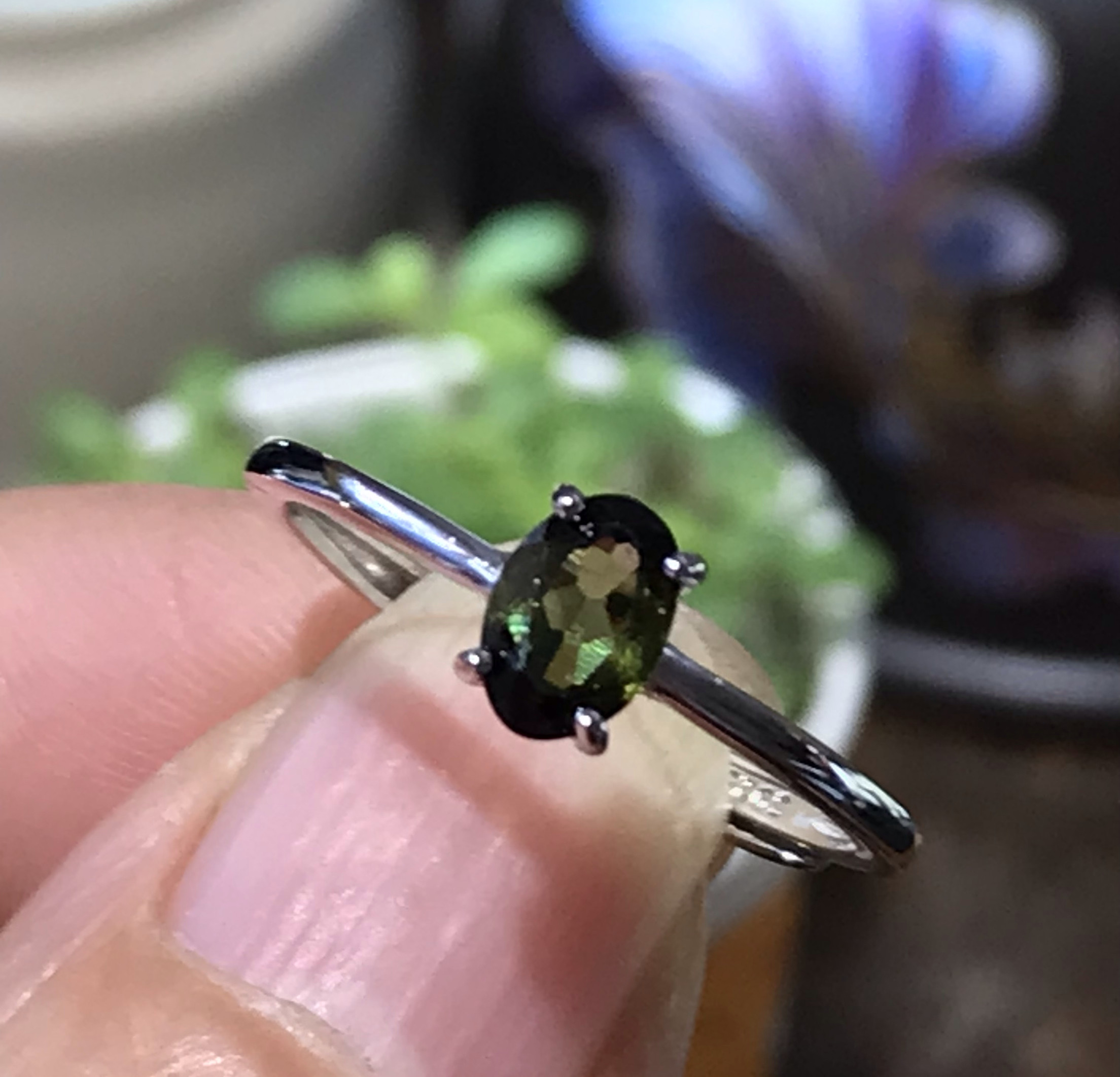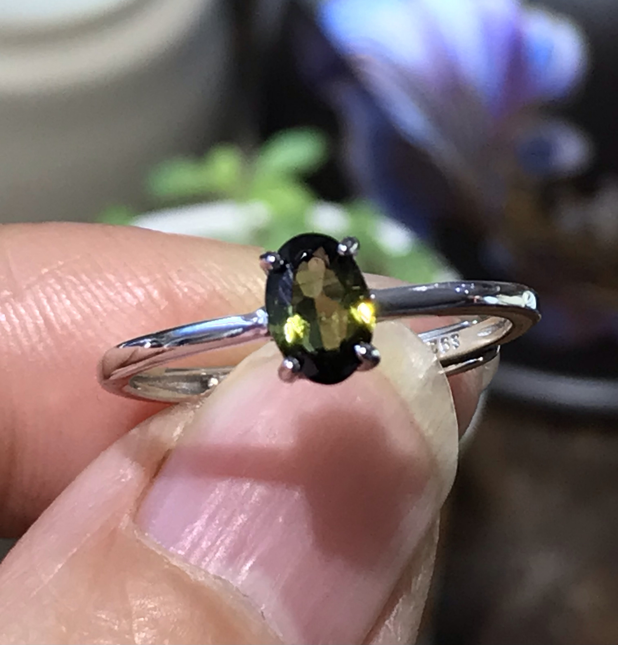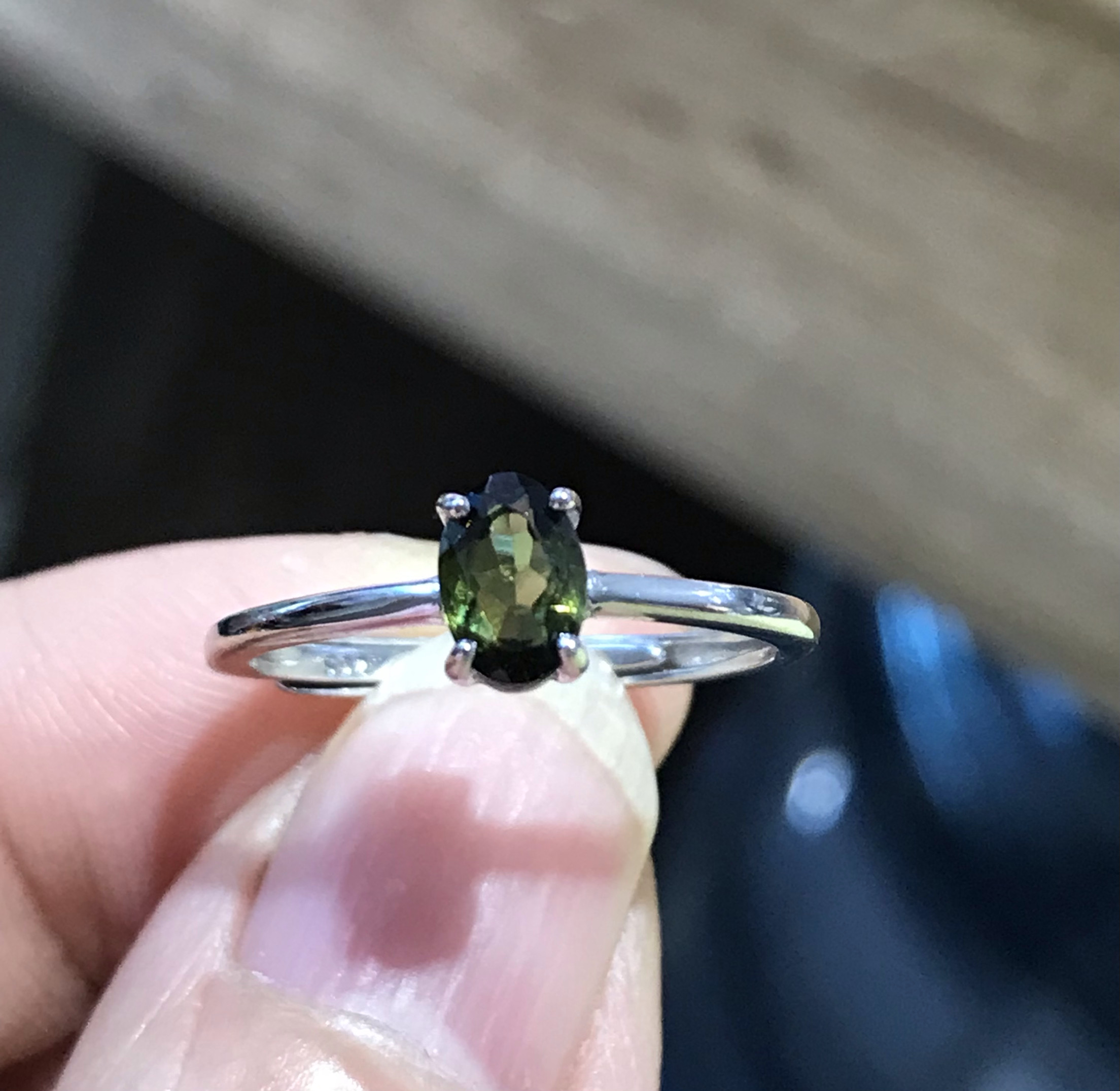 清仓925银镀白金天然绿碧玺戒指女小众设计感高级轻奢精致礼物