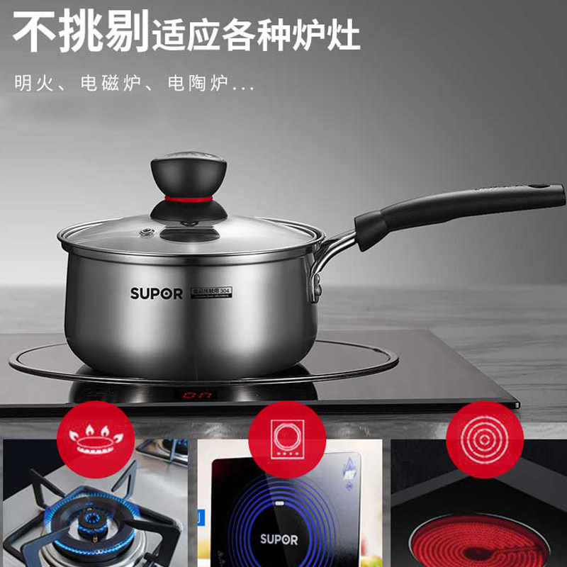 苏泊尔奶锅不锈钢304加厚小汤锅婴儿辅食煮牛奶锅家用电磁炉通用